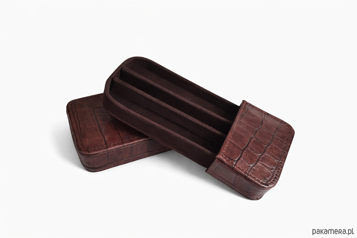 Etui na 3 pióra lub długopisy ciemno brązowe o fakturze krokodyla