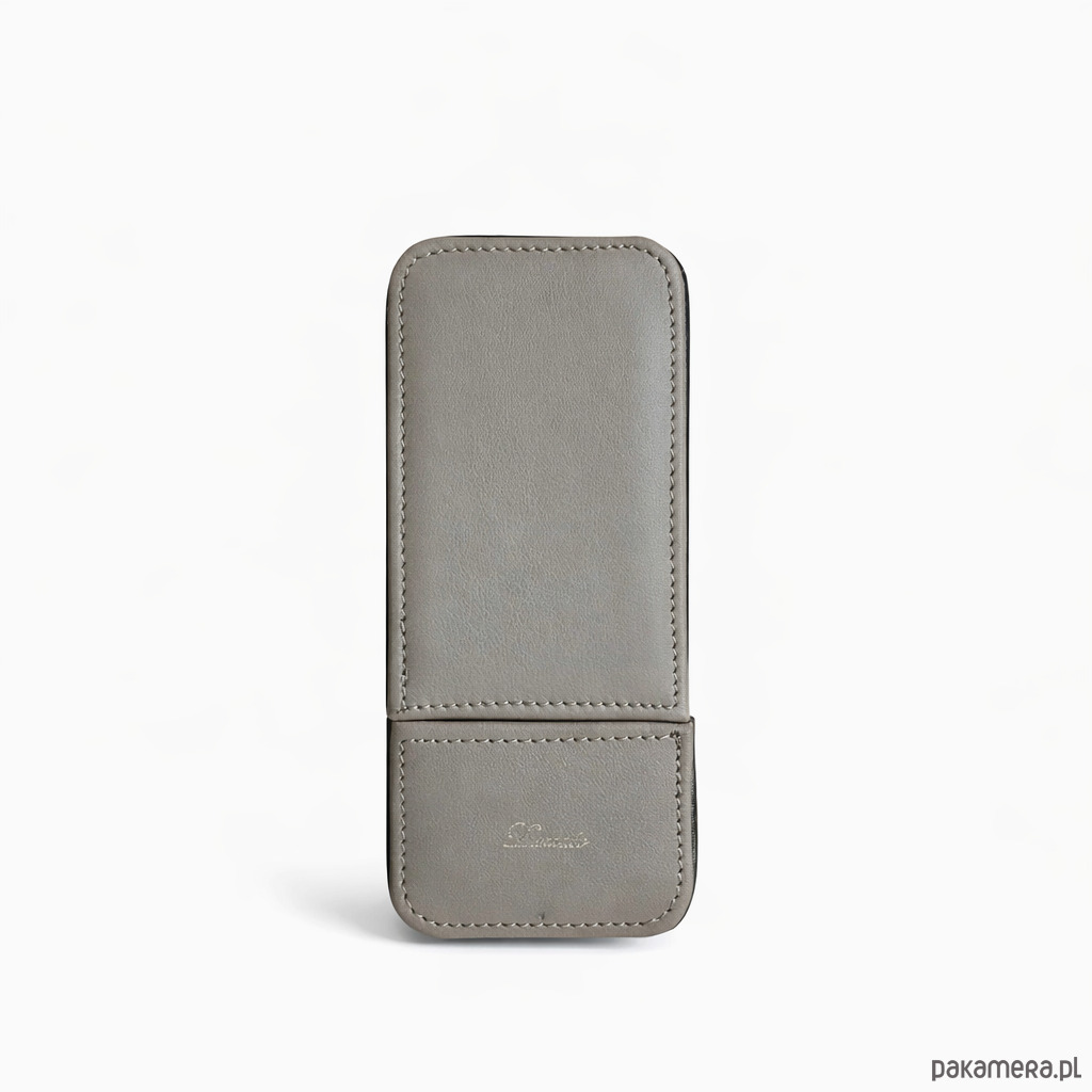 Etui wykonane z pięknej naturalnej skóry w kolorze popielato czarnym , o gładkiej fakturze. Skóra naturalna o najwyższej jakości. Piękne etui w bardzo eleganckim i oryginalnym kształcie . Etui składa się z dwóch osobnych części , jak futerał posiada wyciągany wkład z przegródkami co bardzo ułatwia wkładanie i przechowywanie piór. Etui jest sprzedawane w obniżonej cenie ze względu na minimalną szczelinę po zamknięciu etui. Etui robione ręcznie przy użyciu tradycyjnych metod kaletniczych, zgodnych ze starą sztuką rzemieślniczą. Wymiary 17cmx7,5cmx3cm