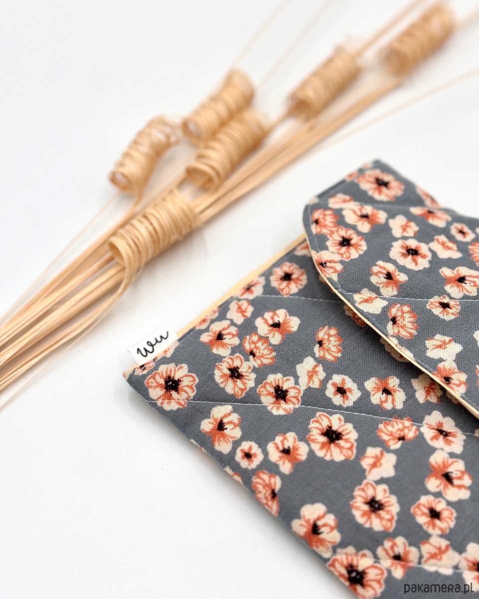 Zapinane na rzep, idealnie sprawdzi się do przechowywania telefonu, książki lub czytnika, a także drobnych kosmetyków, scrunchies, artykułów higienicznych czy kluczy. Doskonały wybór do torebki, plecaka lub walizki.