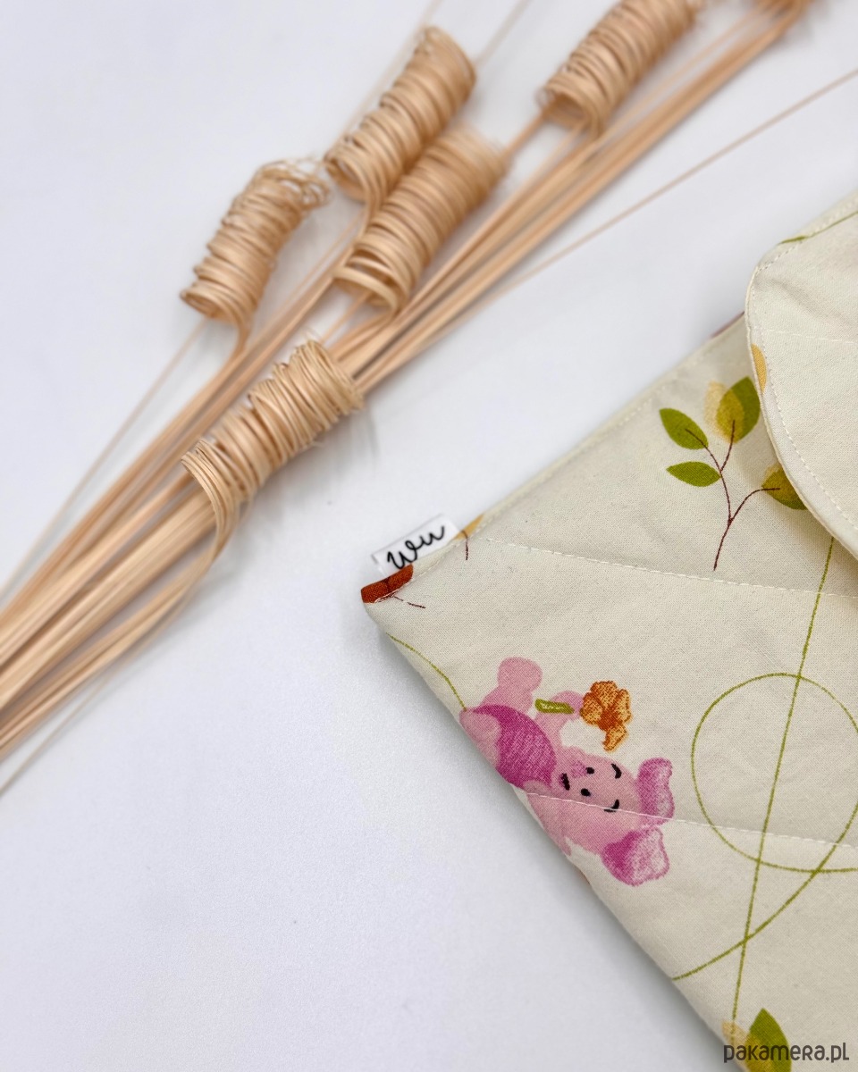 Zapinane na rzep, idealnie sprawdzi się do przechowywania telefonu, książki lub czytnika, a także drobnych kosmetyków, scrunchies, artykułów higienicznych czy kluczy. Doskonały wybór do torebki, plecaka lub walizki.