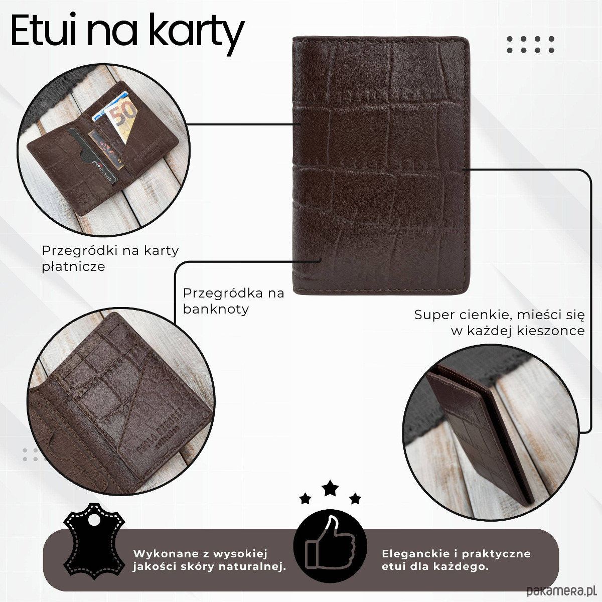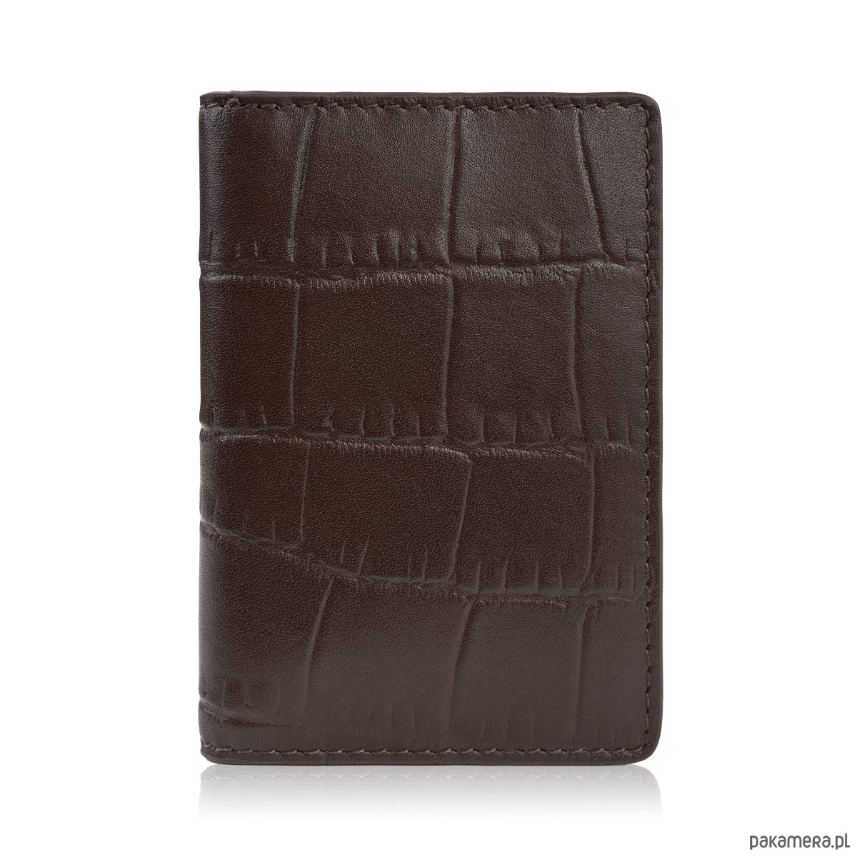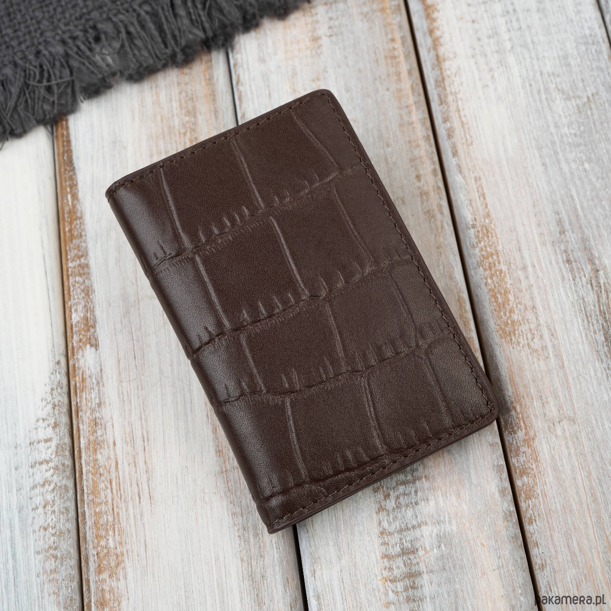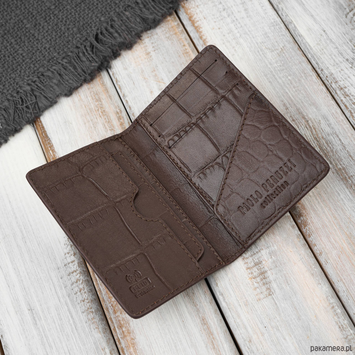 Etui na karty brązowe skórzane z tłoczeniem croco eleganckie Paolo Peruzzi