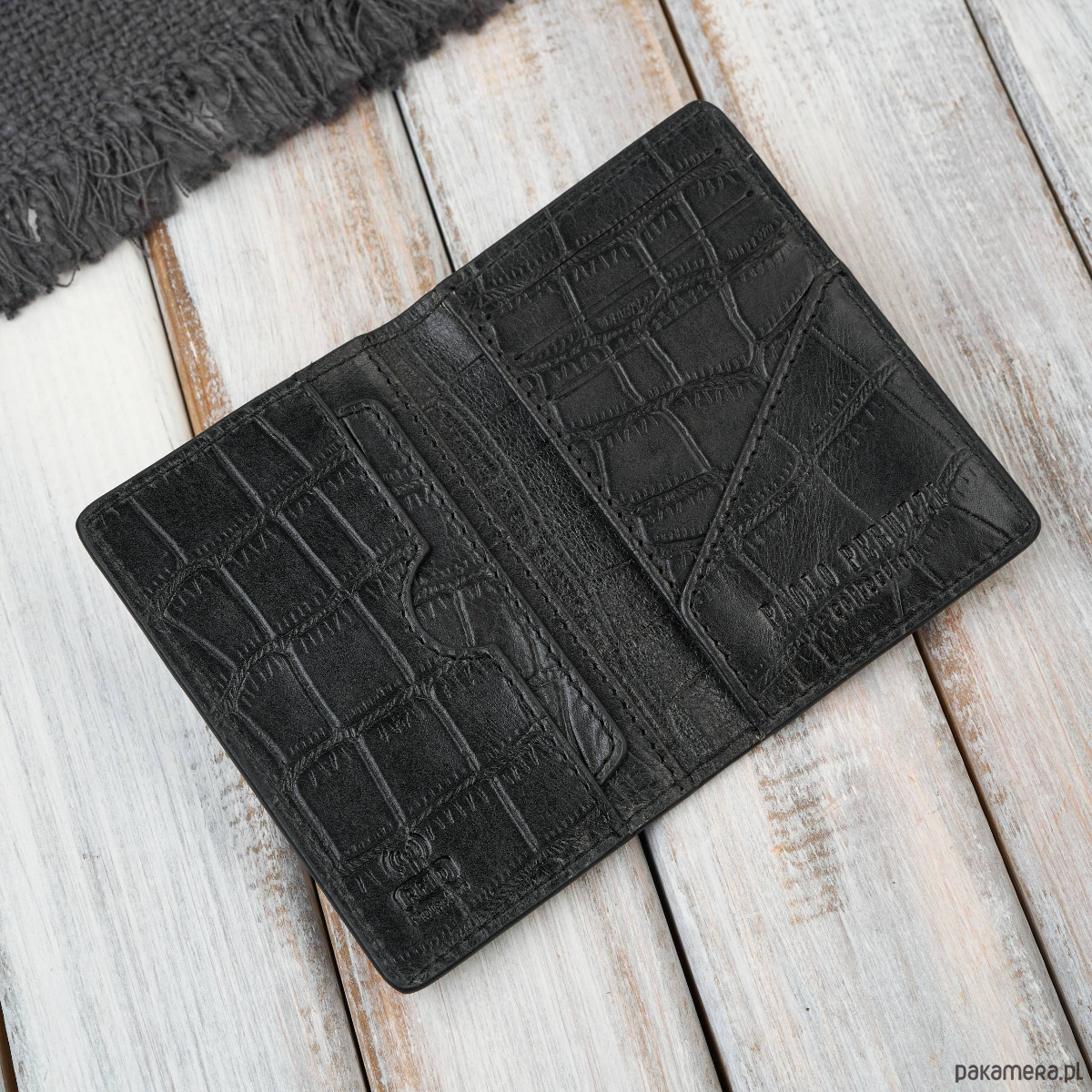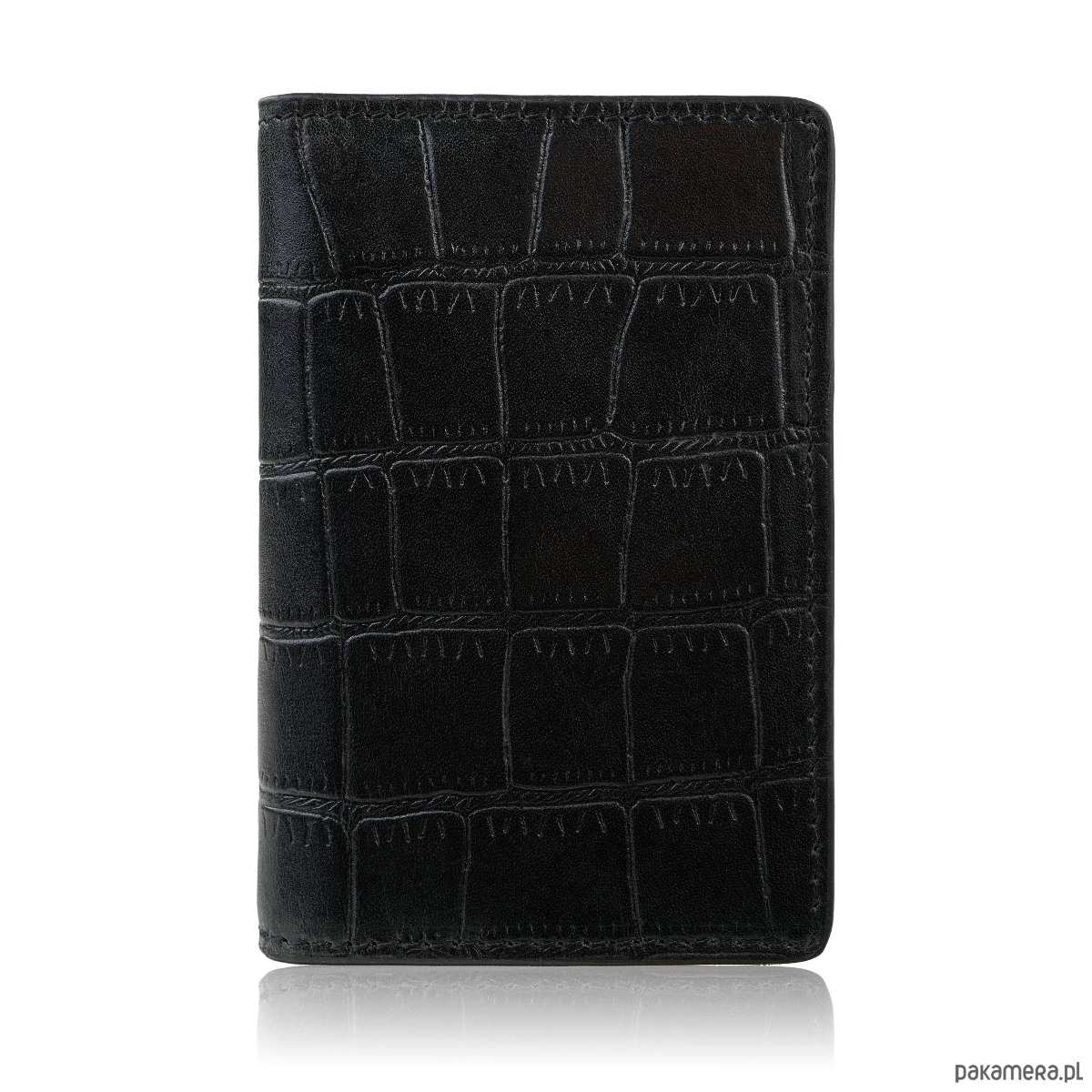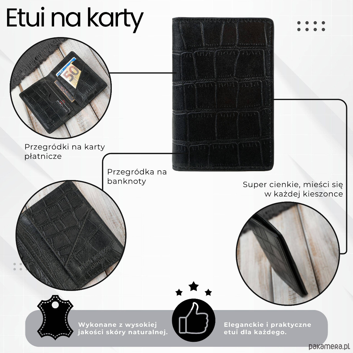 Etui na karty czarne skórzane z tłoczeniem croco eleganckie RFID