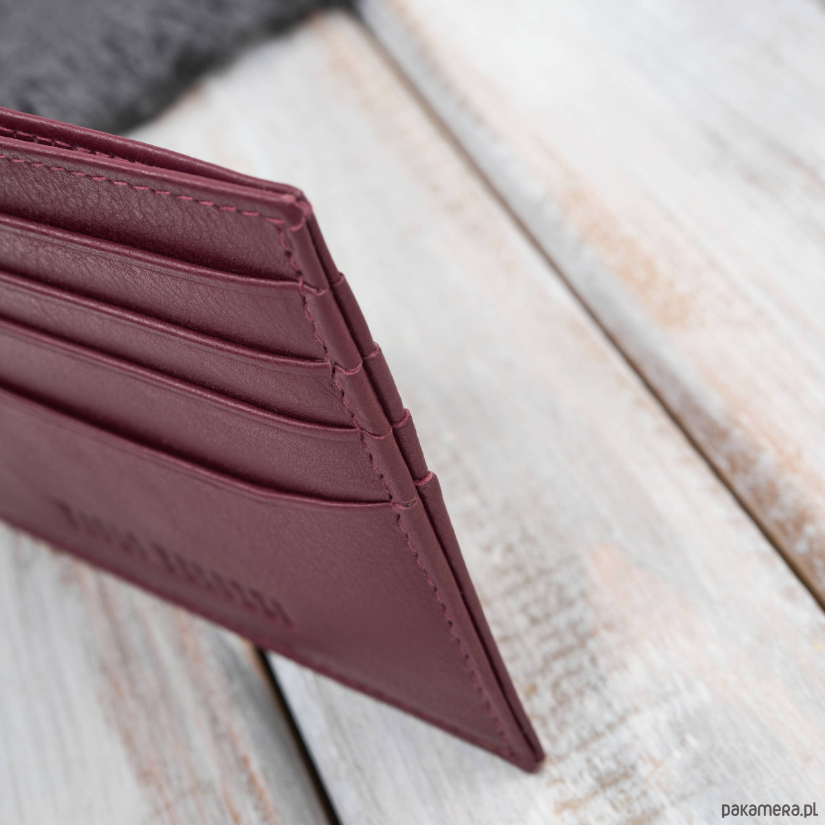 Minimalistyczny design w głebokiej czerwieni – ponadczasowa barwa pasuje do każdej stylizacji i sprawia, że etui na karty staje się dyskretnym, a jednocześnie stylowym dodatkiem.