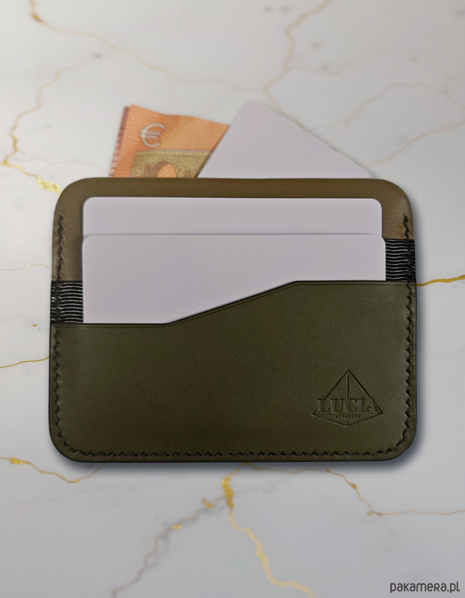 Minimalistyczne etui na karty, wykonane ręcznie w mojej małej pracowni. Wszystkie etapy, od cięcia, przez szycie, po wykończenie, realizuję samodzielnie.