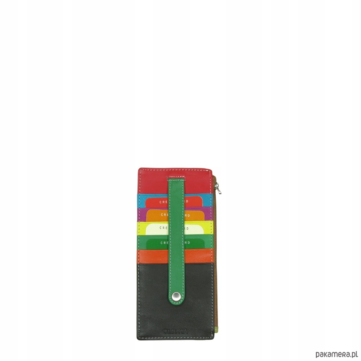 Etui na karty zamykane przegrody kolorowe skórzane na prezent OLIVKA
