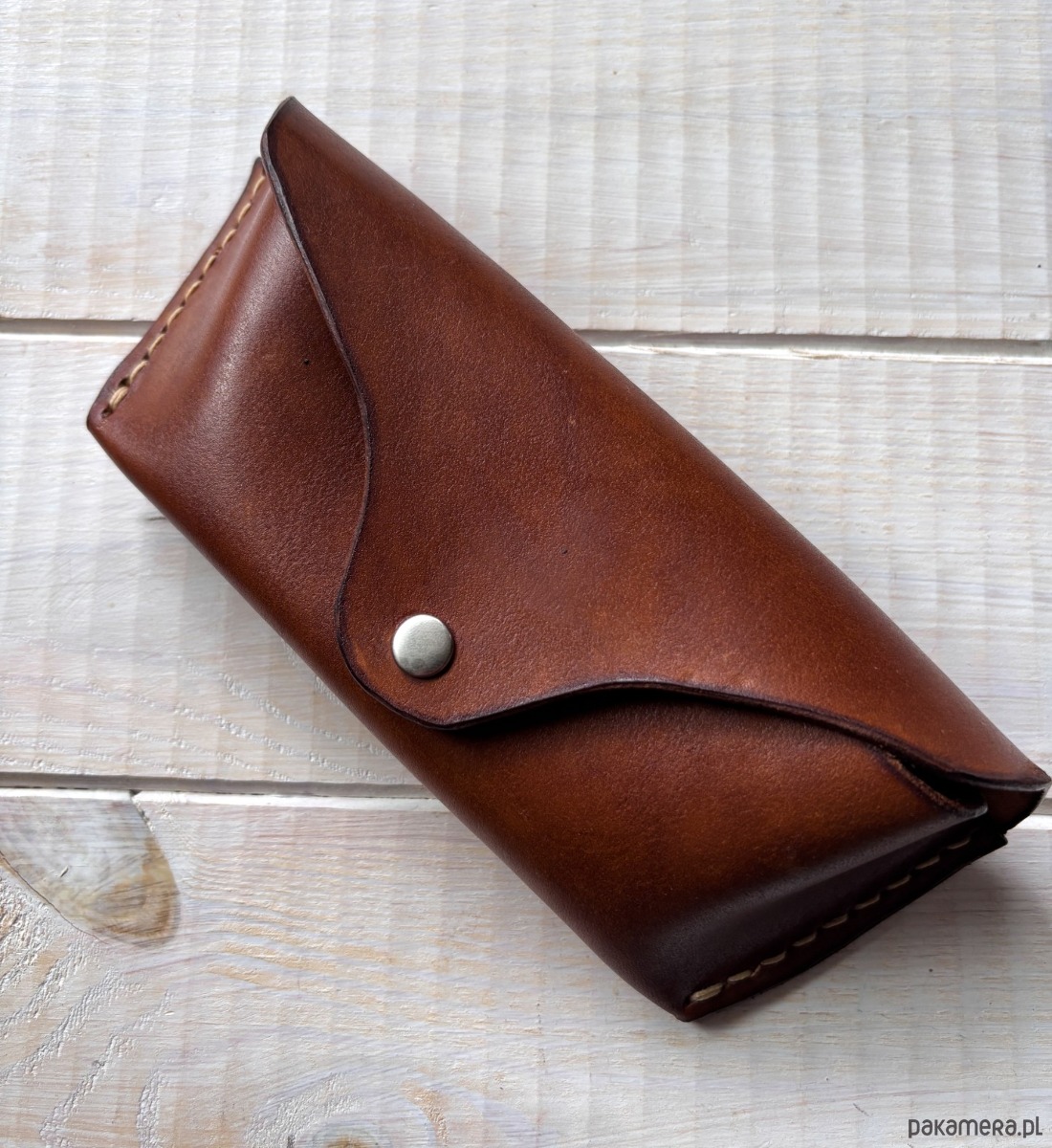 Ręcznie wykonane etui na okulary z naturalnej skóry garbowanej roślinnie.
