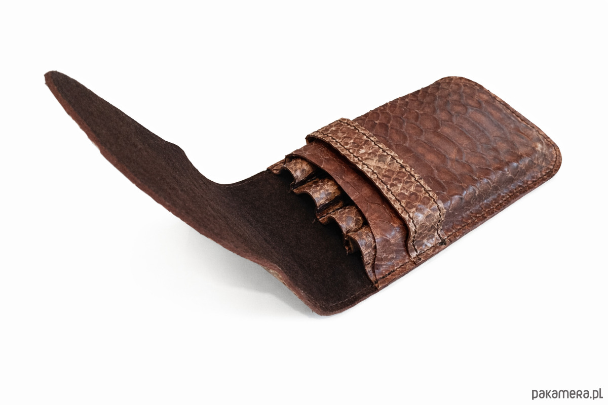 ETUI WYKONANE Z NATURALNEJ SKÓRY W KOLORZE BRĄZOWYM Z TŁOCZONĄ FAKTURĄ KROKODYLA . ETUI ROBIONE RĘCZNIE PRZY UŻYCIU TRADYCYJNYCH METOD , ZGODNYCH ZE STARĄ SZTUKĄ RZEMIEŚLNICZĄ . ETUI ZAMYKANE NA KLAPKĘ. POSIADA SEPARATOR MIĘDZY PIÓRAMI. POŁĄCZENIE PIĘKNEJ SKÓRY ZE SZCZEGÓLNĄ DBAŁOŚCIĄ WYKONANIA WYRÓŻNIA NASZE PRODUKTY NA TLE INNYCH .