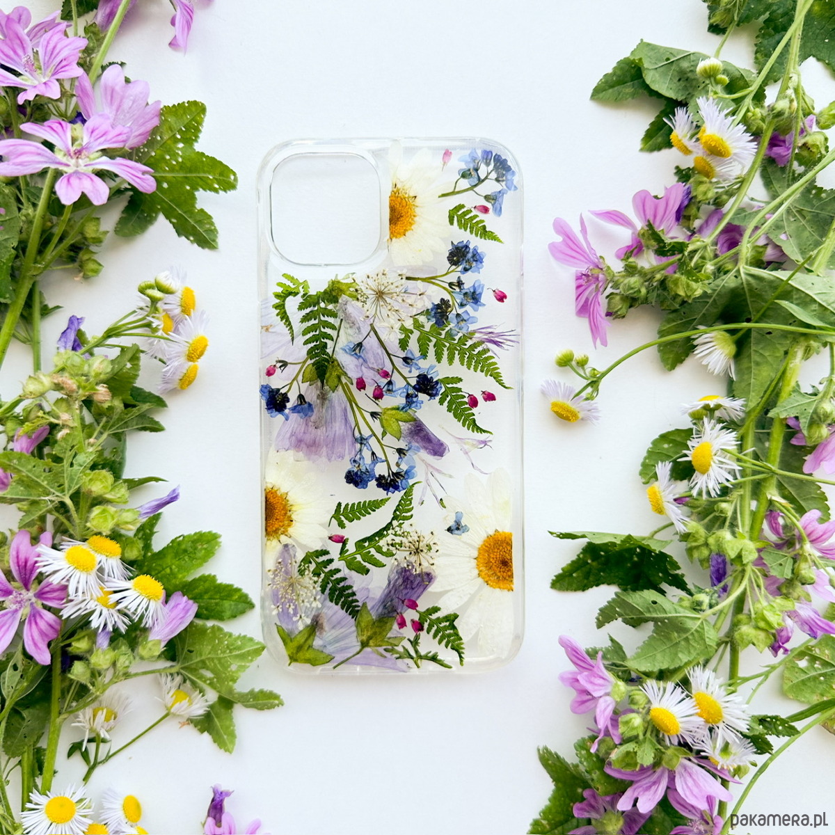Etui przestawione na zdjęciu jest tylko wzorem - każda obudowa jest nieco inna, a w przypadku kejsów z większą różnorodnością roślin, wykorzystujemy kwiaty dostępne w danym momencie - nie zawsze dysponujemy takimi samymi gatunkami kwiatów. Staramy się, aby zamysł kompozycji był jak najbardziej wierny oryginałowi.