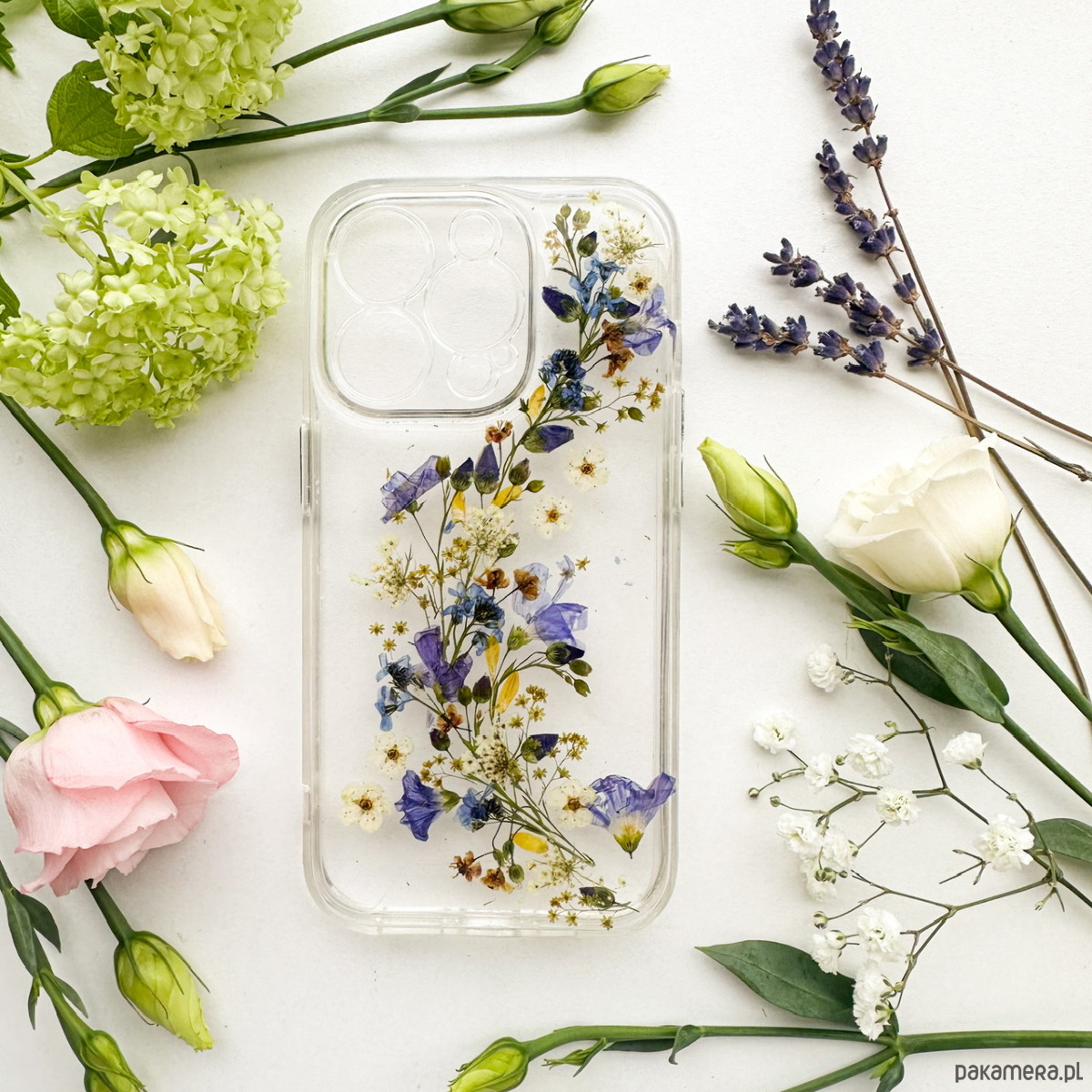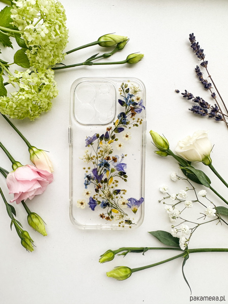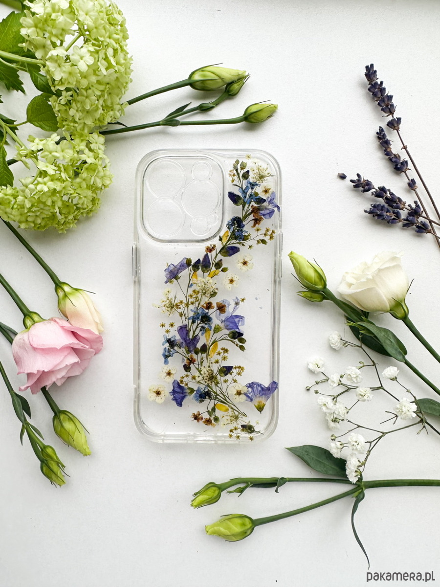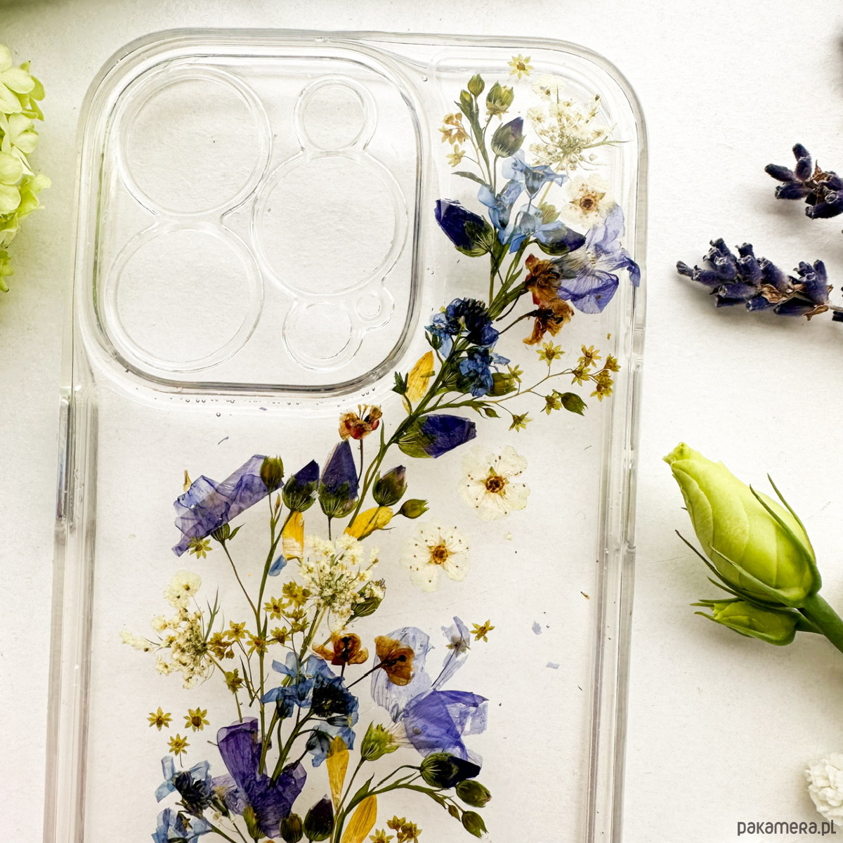 Etui przestawione na zdjęciu jest tylko wzorem - każda obudowa jest nieco inna, a w przypadku kejsów z większą różnorodnością roślin, wykorzystujemy kwiaty dostępne w danym momencie - nie zawsze dysponujemy takimi samymi gatunkami kwiatów. Staramy się, aby zamysł kompozycji był jak najbardziej wierny oryginałowi.