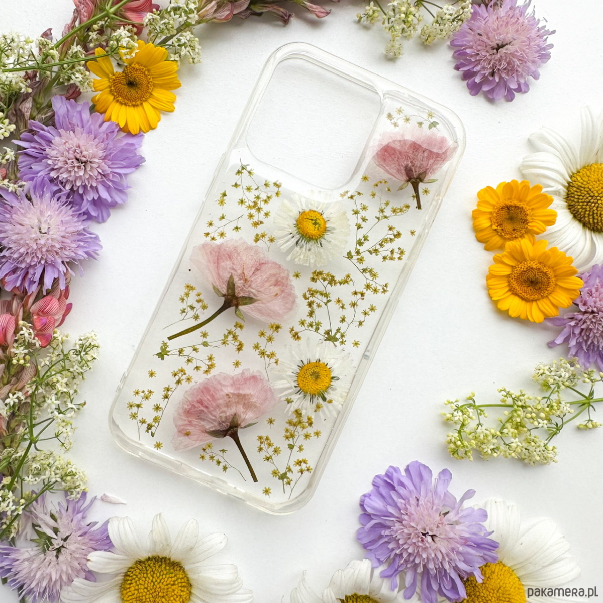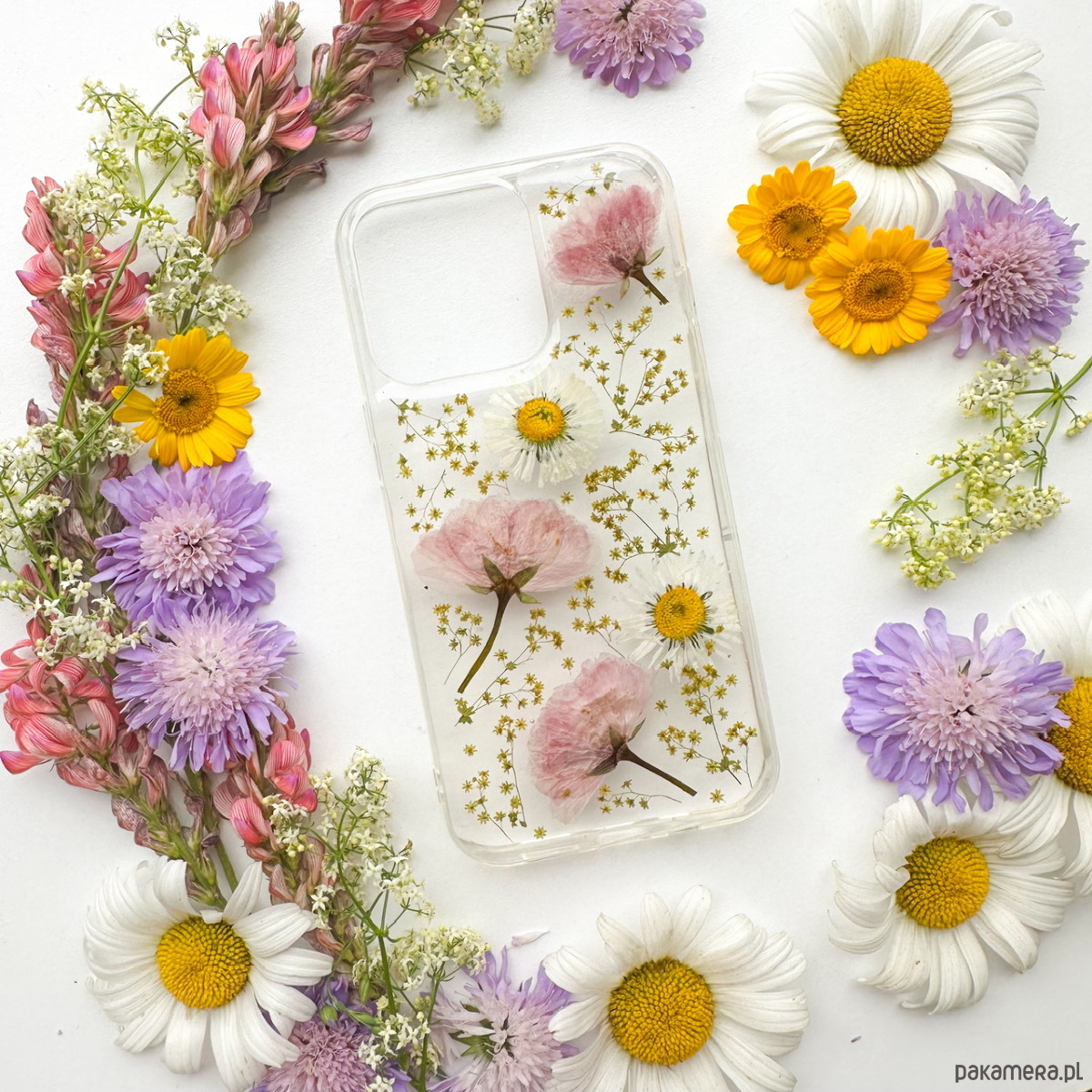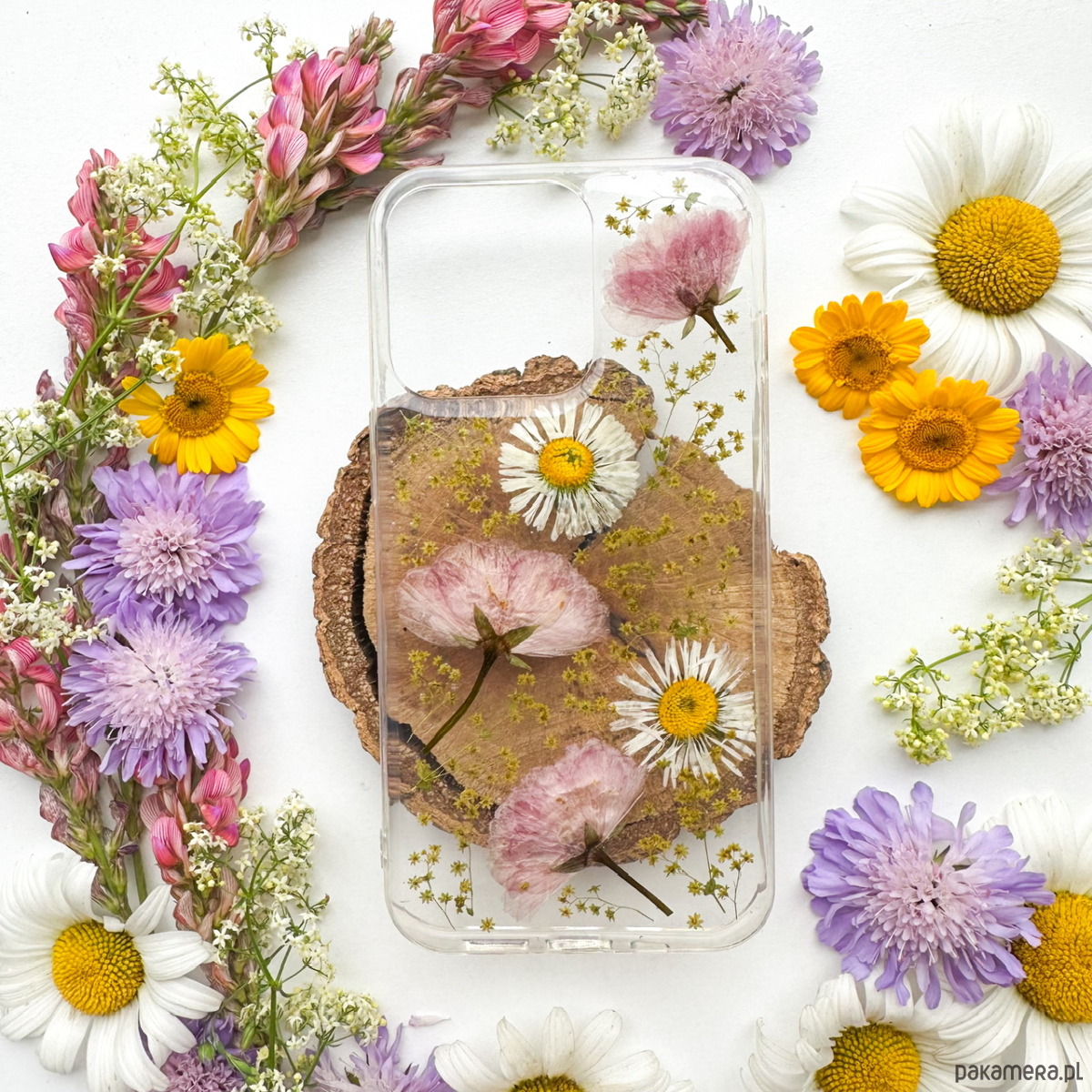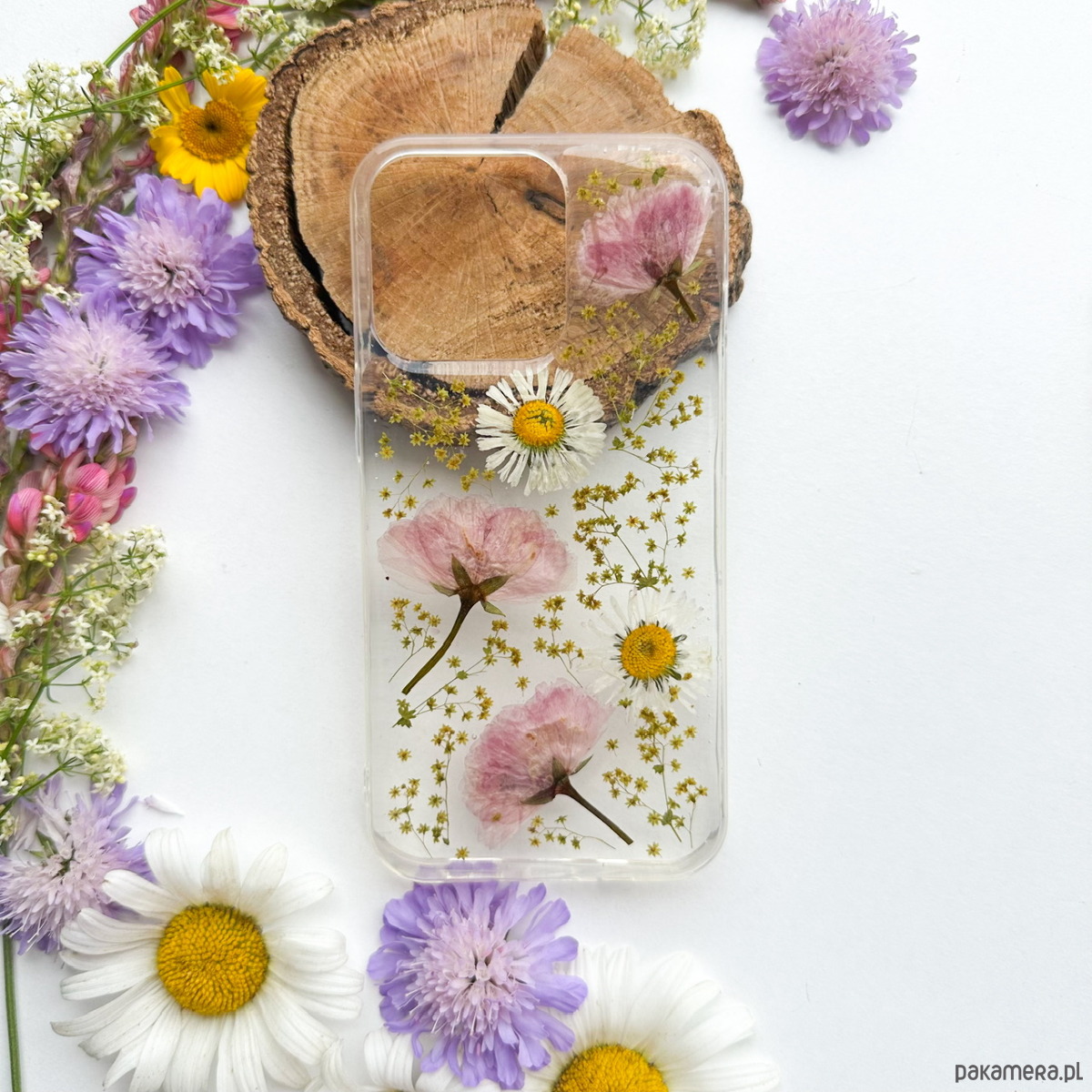 Etui przestawione na zdjęciu jest tylko wzorem - każda obudowa jest nieco inna, a w przypadku kejsów z większą różnorodnością roślin, wykorzystujemy kwiaty dostępne w danym momencie - nie zawsze dysponujemy takimi samymi gatunkami kwiatów. Staramy się, aby zamysł kompozycji był jak najbardziej wierny oryginałowi.
