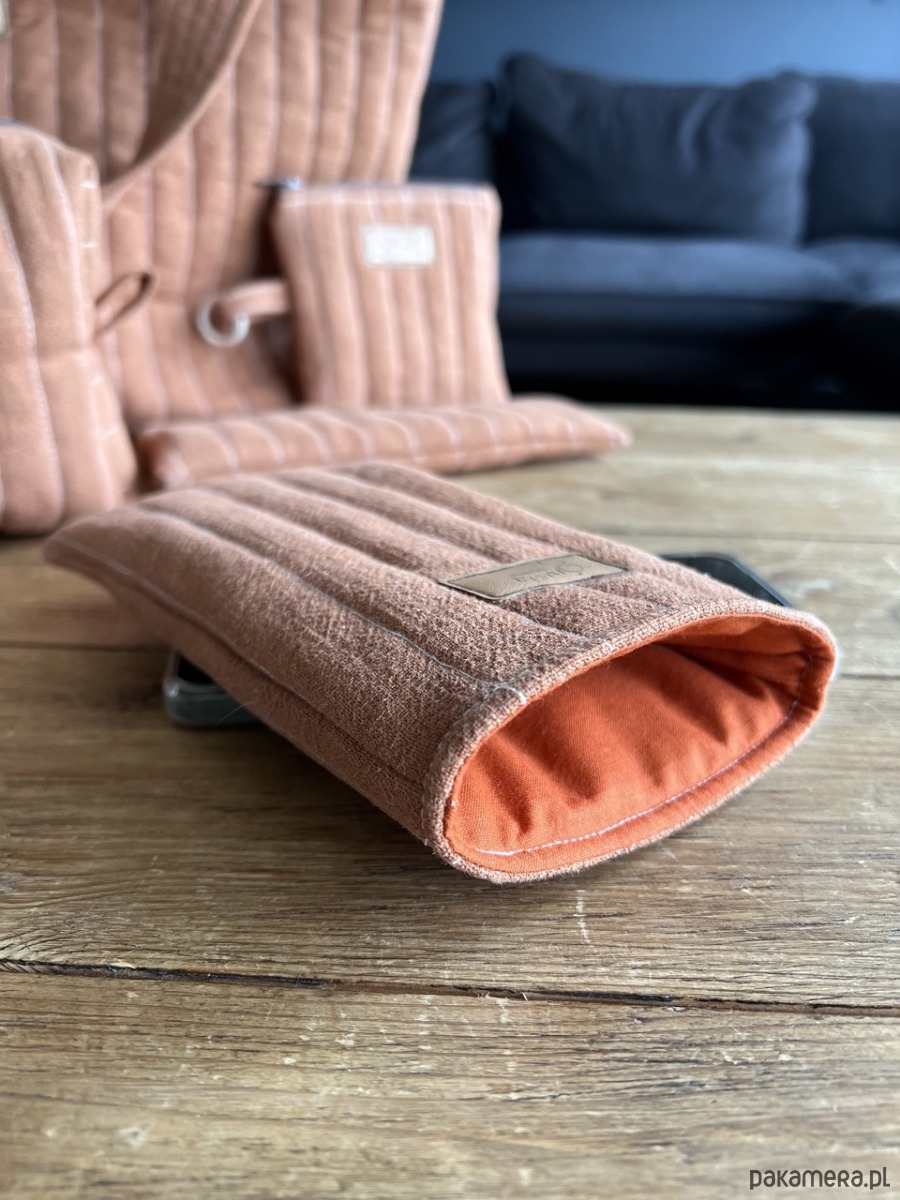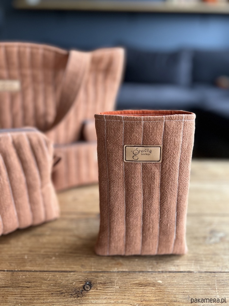 Uszyte ręcznie z wysokiej jakości lnu z pikowaną strukturą, jest nie tylko przyjemne w dotyku, ale też wyjątkowo trwałe i naturalne. Miękkie wnętrze delikatnie chroni Twój telefon przed zarysowaniami, a kompaktowy rozmiar sprawia, że zmieści się w każdej torebce, plecaku czy nawet większej kieszeni.