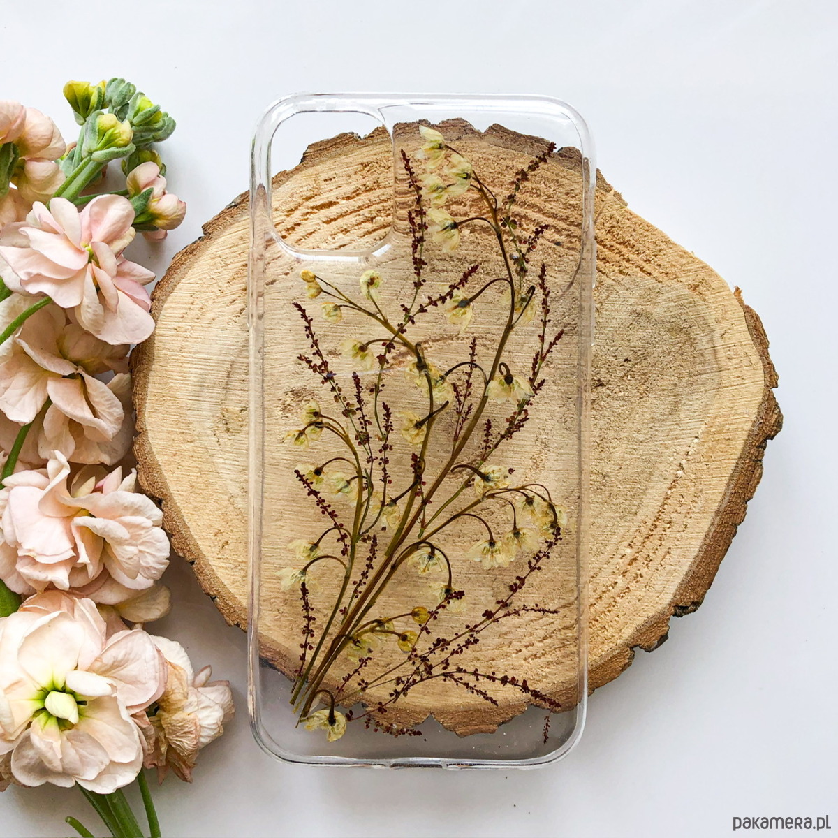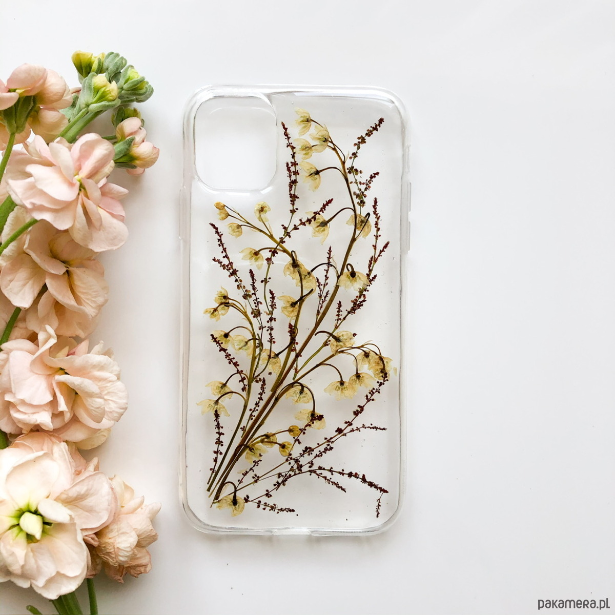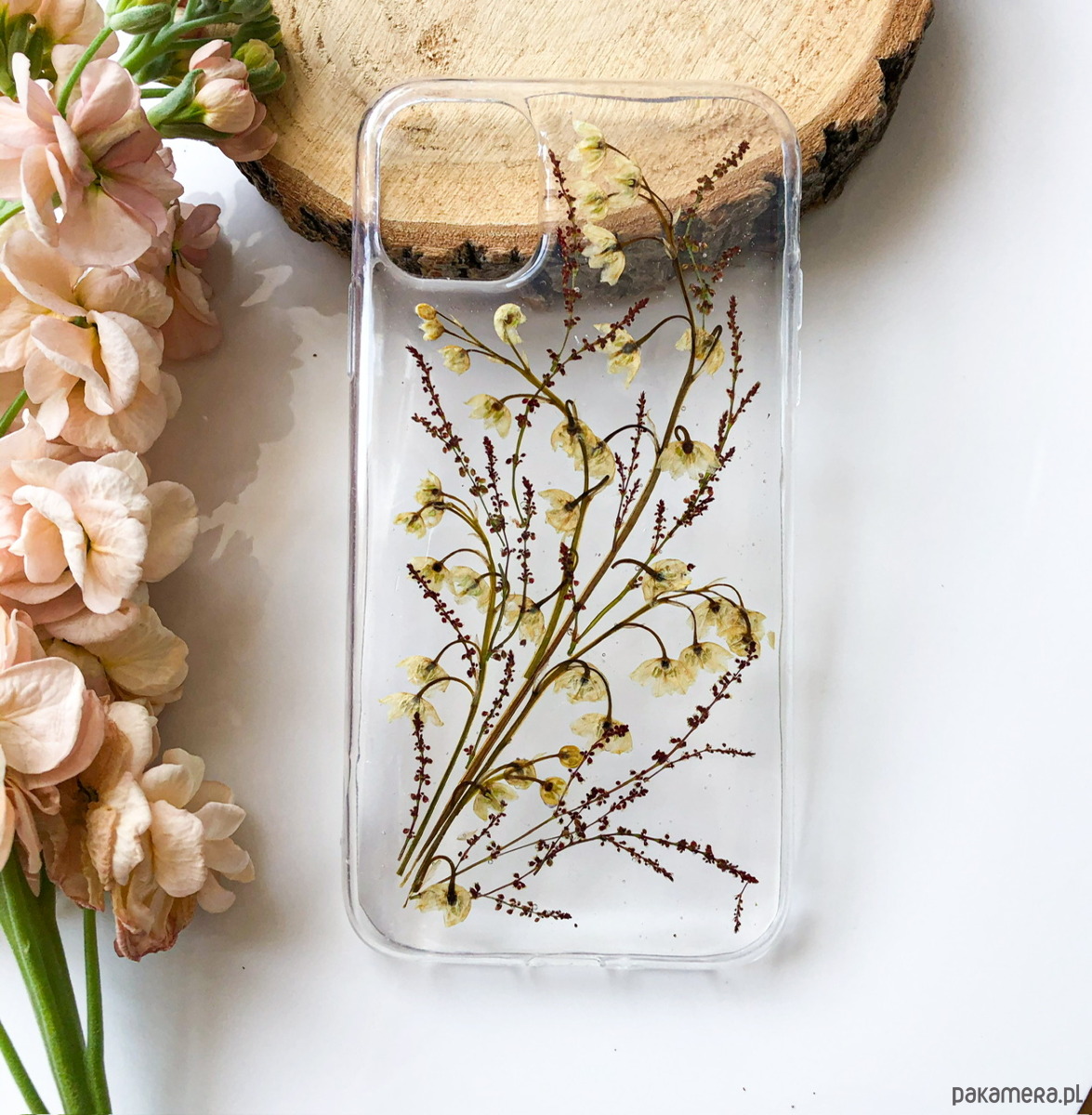 Etui na telefon z suszonymi kwiatami- tańczące konwalie