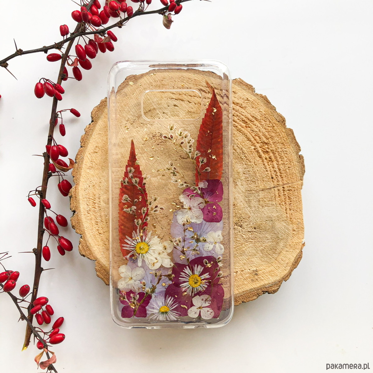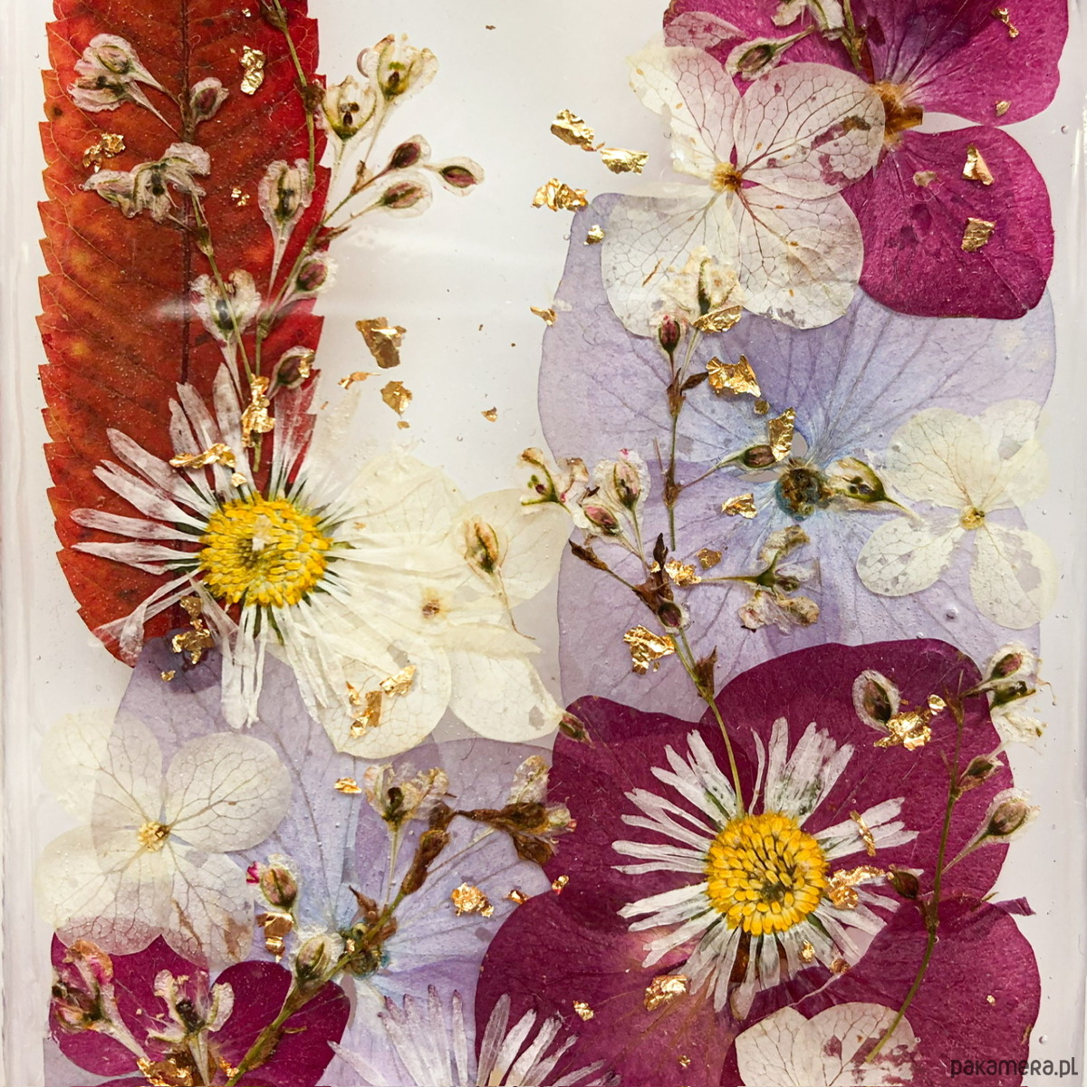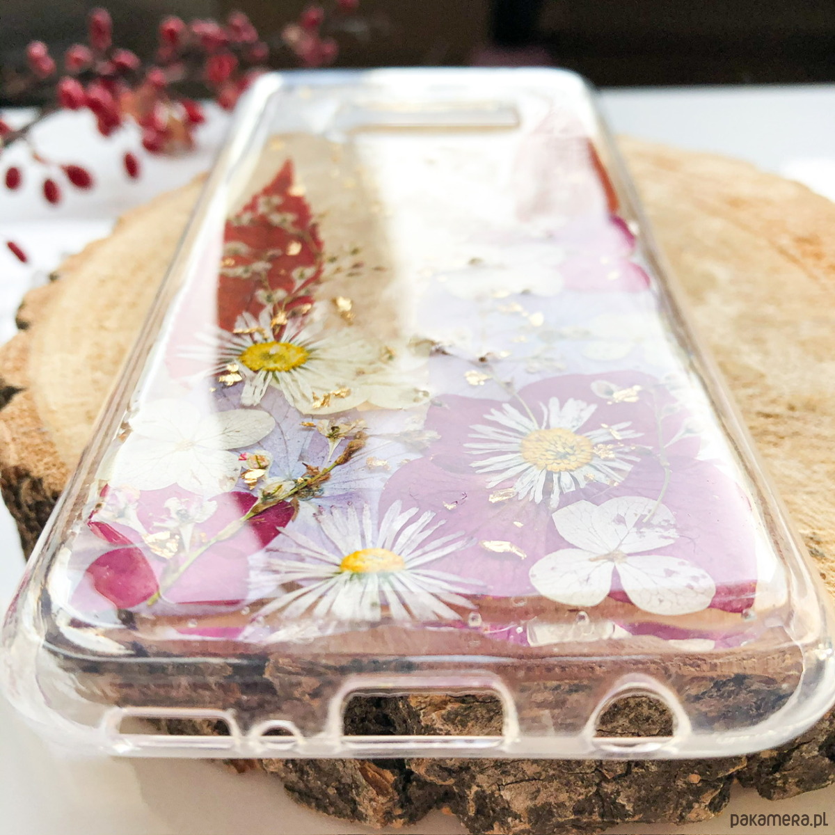 Etui na telefon z prawdziwymi suszonymi kwiatami.