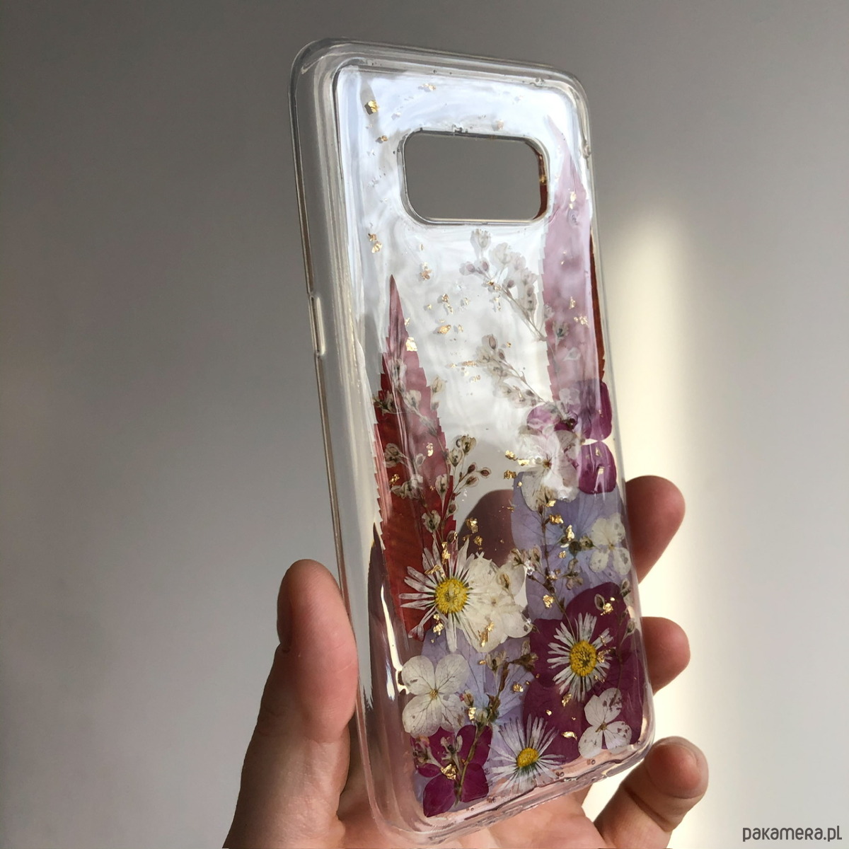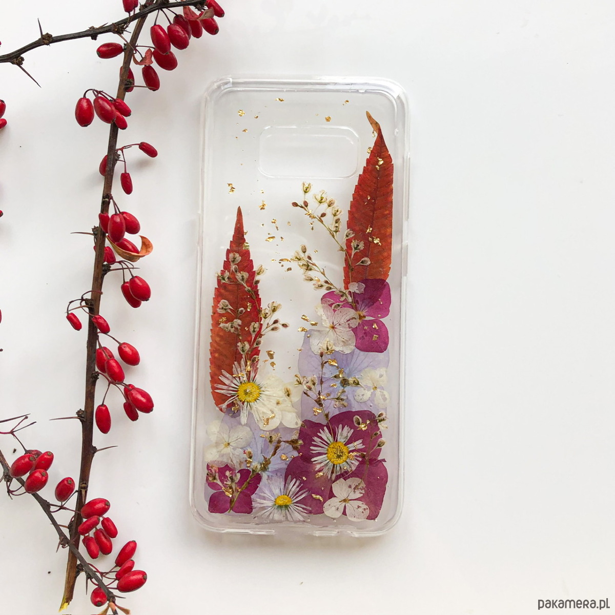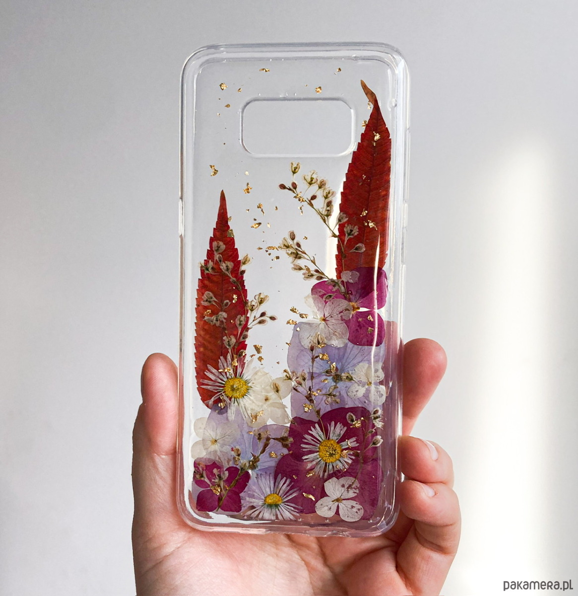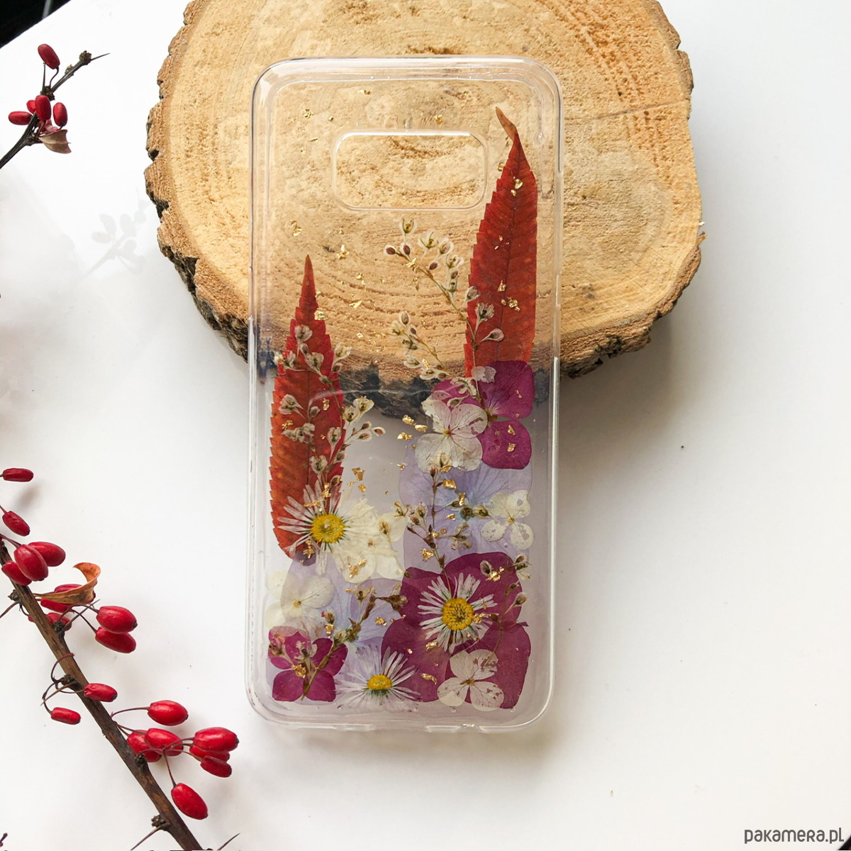 Etui na telefon z prawdziwymi suszonymi kwiatami.