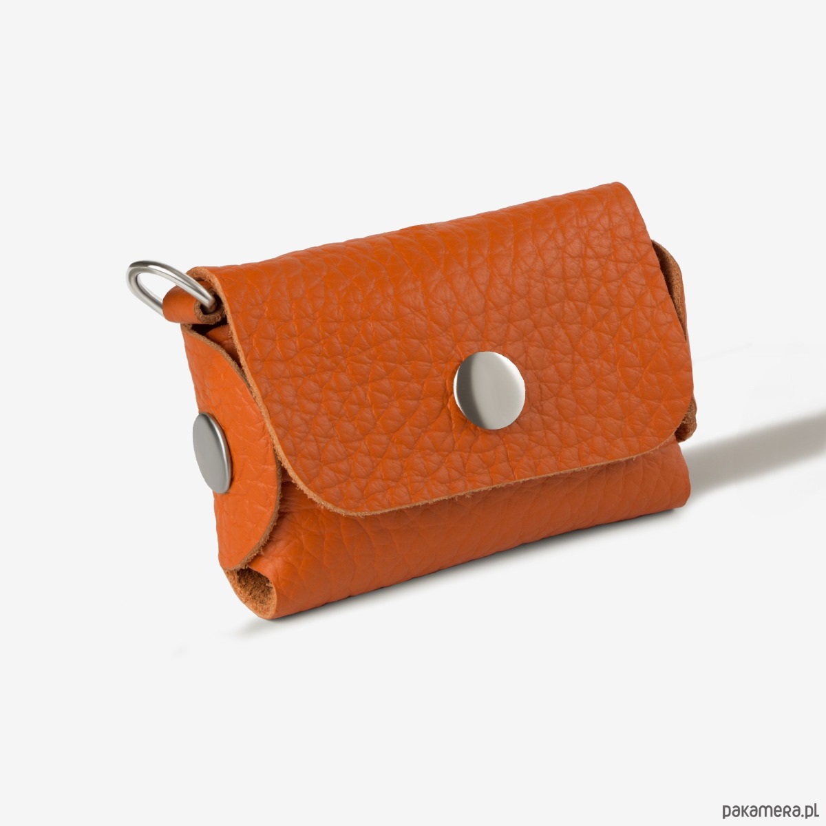 Etui Duo Bosco to funkcjonalny i dopracowany dodatek, wykonany z naturalnej, ziarnistej skóry włoskiej w wyrazistym kolorze pomarańczowym. Zapinane jest na wygodny zatrzask, a u dołu posiada otwór umożliwiający szybkie wyciągnięcie woreczków.