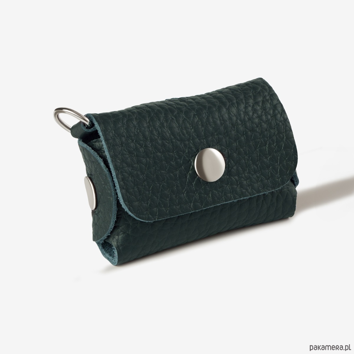 Etui Duo Terra to przemyślany i estetyczny dodatek do codziennych spacerów, wykonany z naturalnej, ziarnistej skóry włoskiej w odcieniu głębokiej zieleni. Zapinane jest na wygodny zatrzask, a u dołu posiada otwór umożliwiający szybkie wyciągnięcie woreczków.