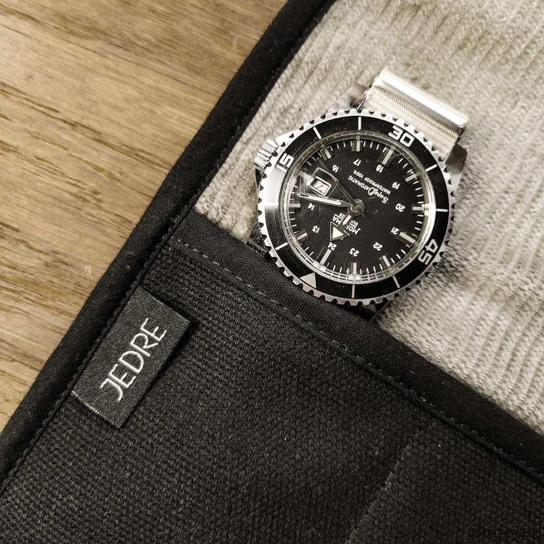 - Oryginalna konstrukcja pokrowca na zegarki – skonstruowany przez twórcę marki JEDRE