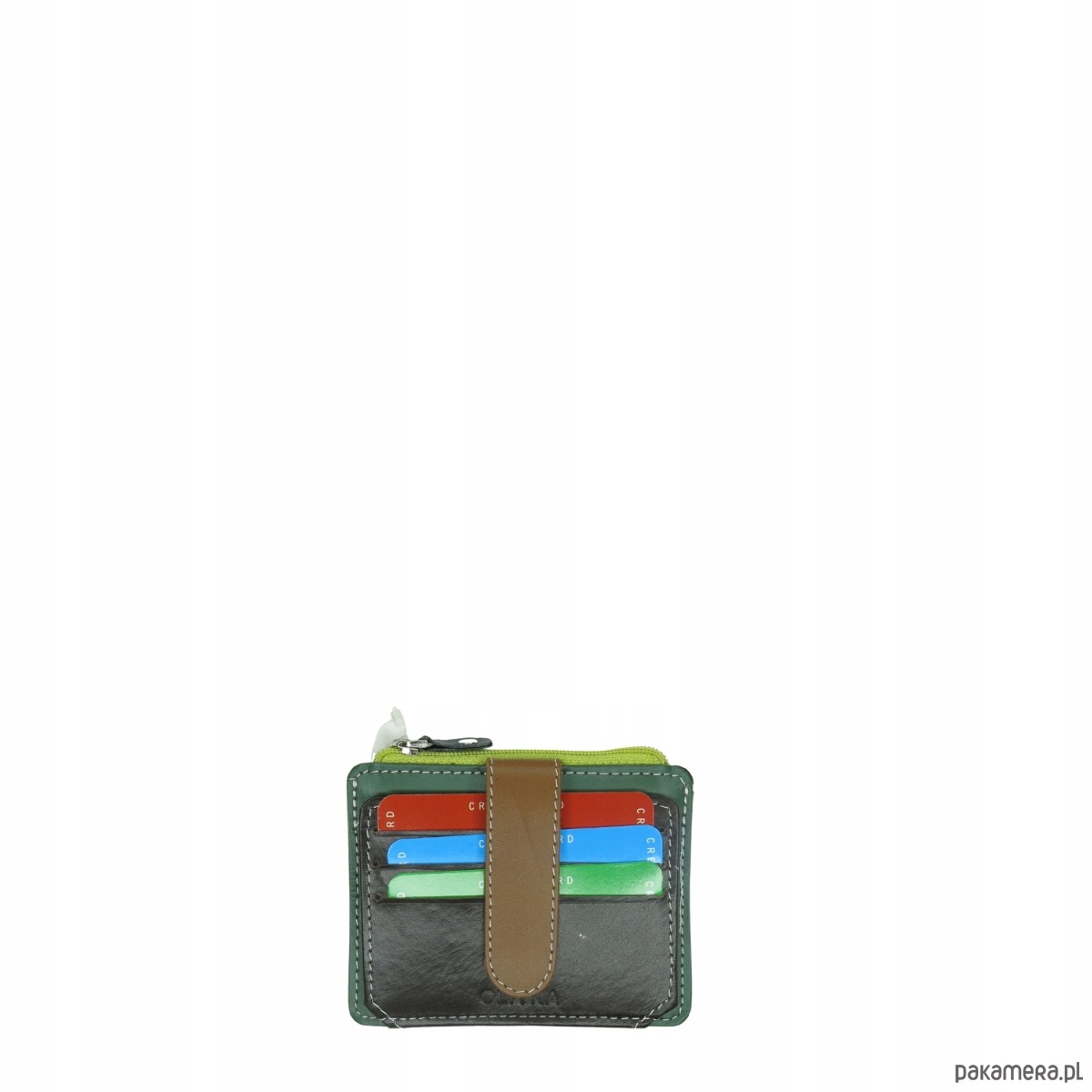 Etui organizer na karty składane skórzane na prezent przegrody OLIVKA