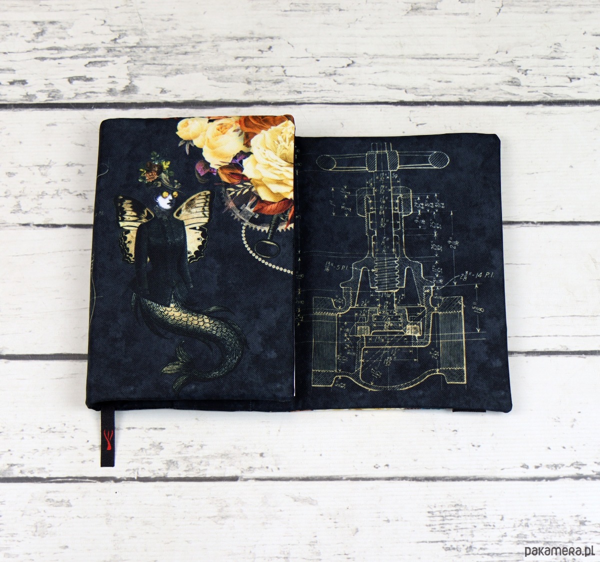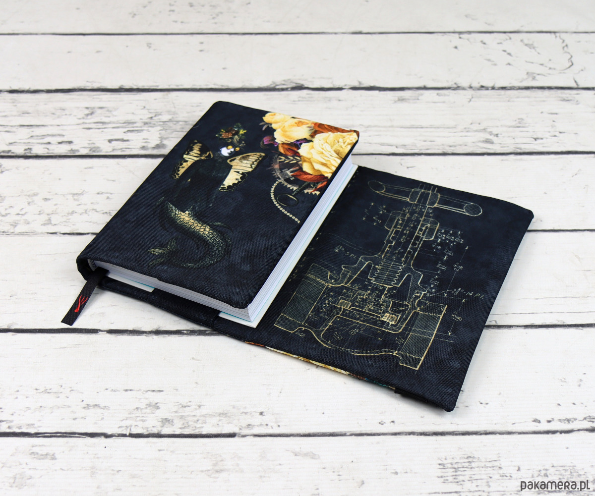 Otulacz jest zaprojektowany tak aby dopasować się do każdej grubości. Sprawdzi się przy książkach w miękkiej jak i w twardej oprawie. Posiada zakładkę wstążkową oraz mocną gumkę do spięcia całości.