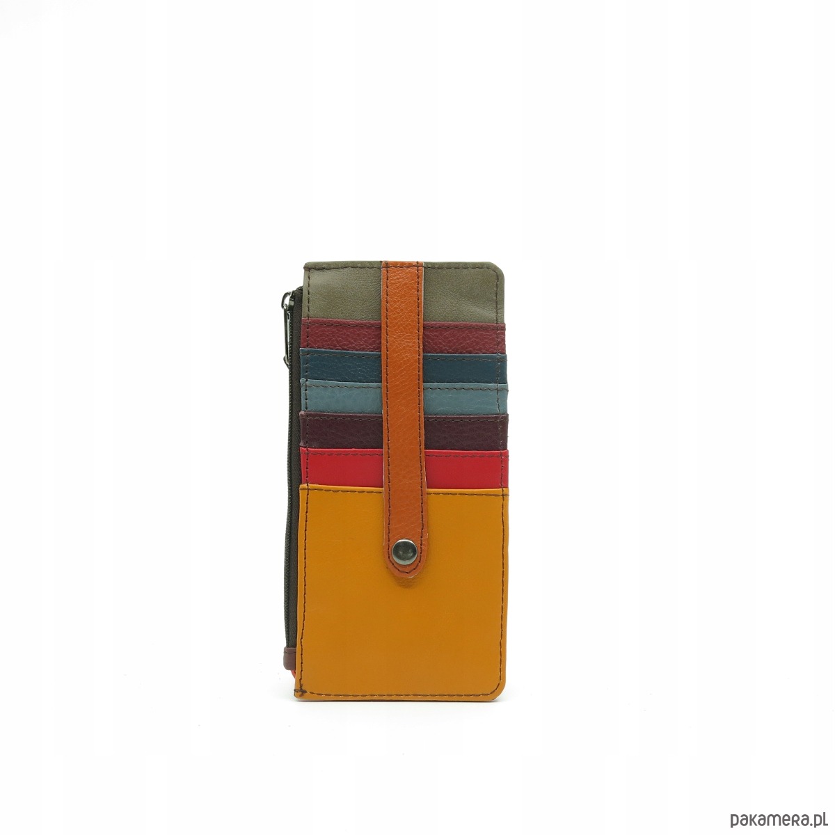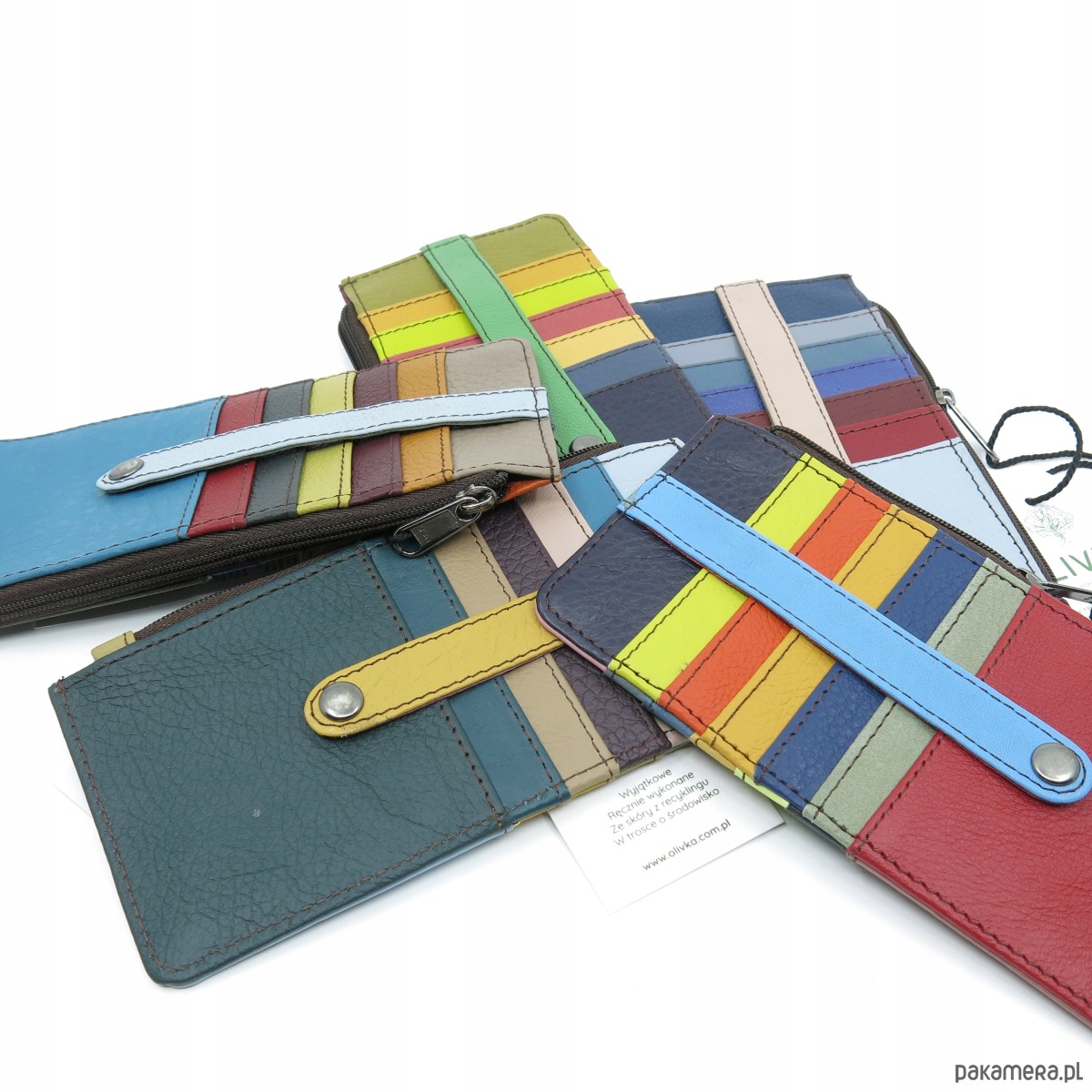 Etui skórzane na karty wizytówki dużo przegródek kieszeń na zamek Olivka