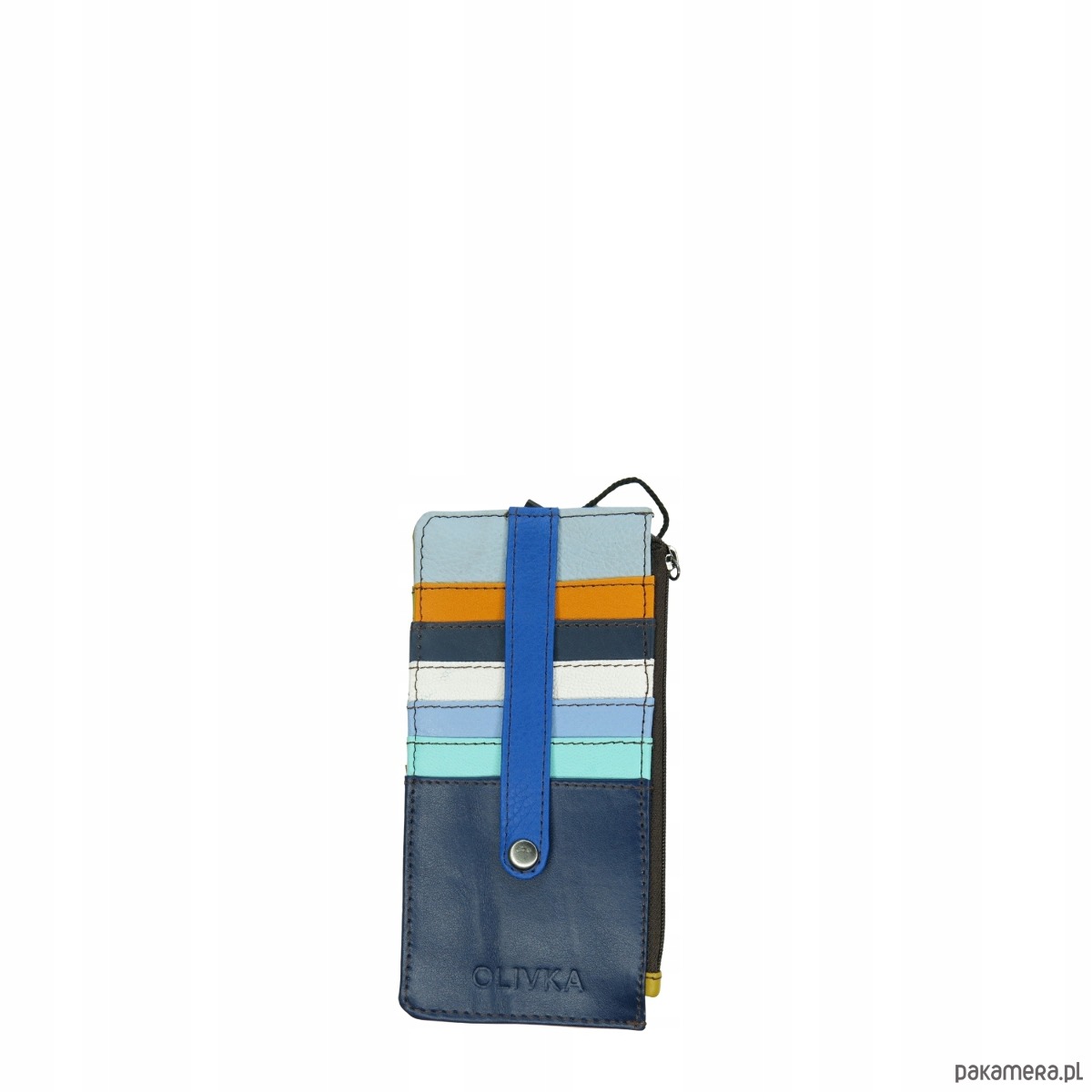 Etui skórzane na karty wizytówki dużo przegródek kieszeń na zamek OLIVKA
