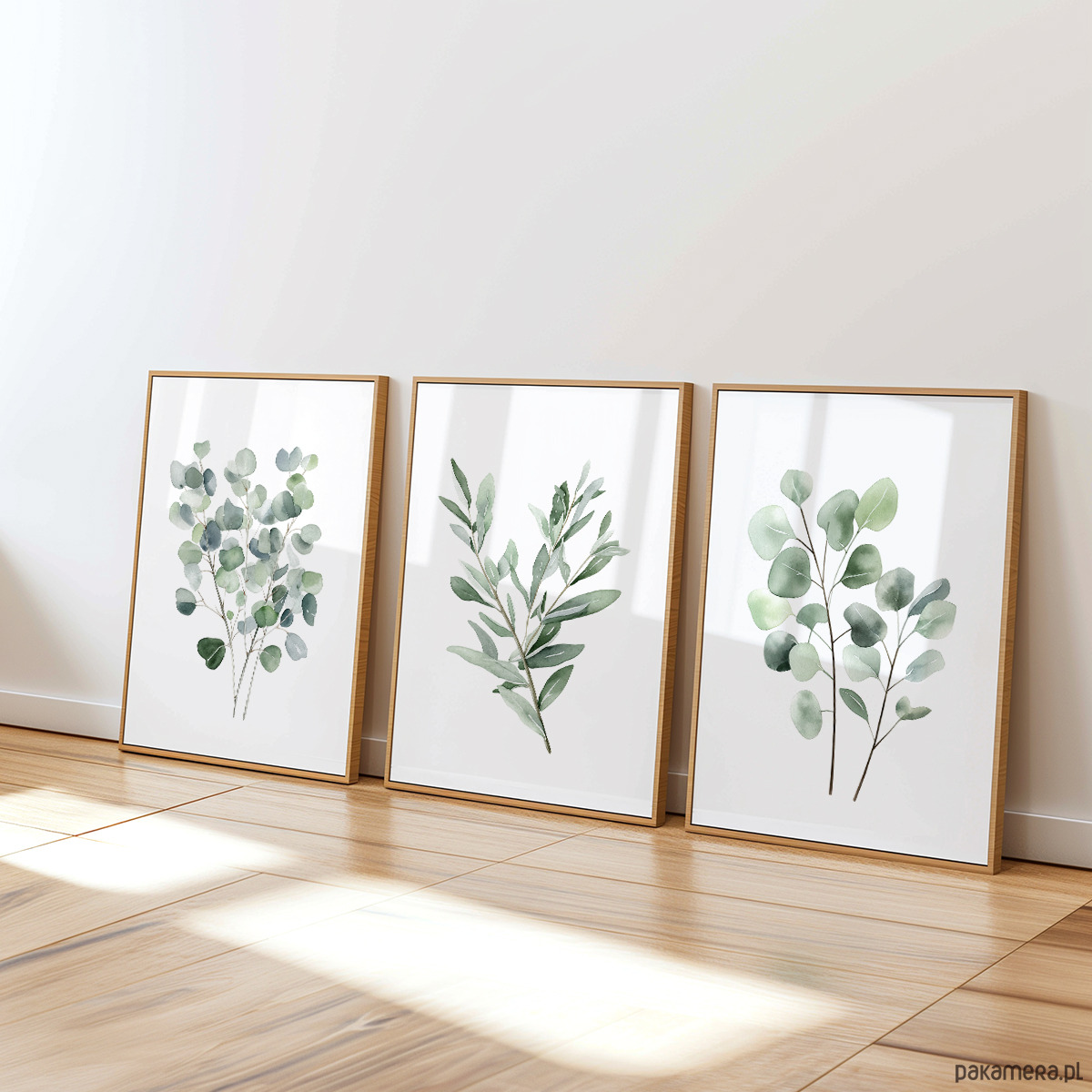 Eukaliptus i Szałwia - Zestaw trzech grafik botanicznych