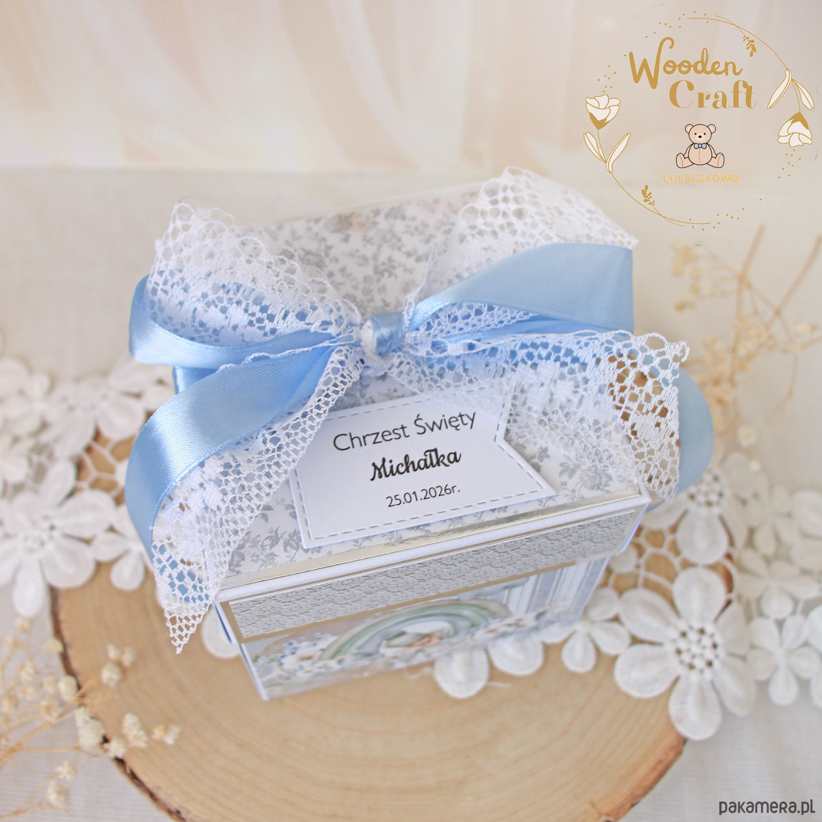 Box będzie pięknym prezentem dla chłopca z okazji Chrztu Świętego, narodzin, roczku lub urodzin.