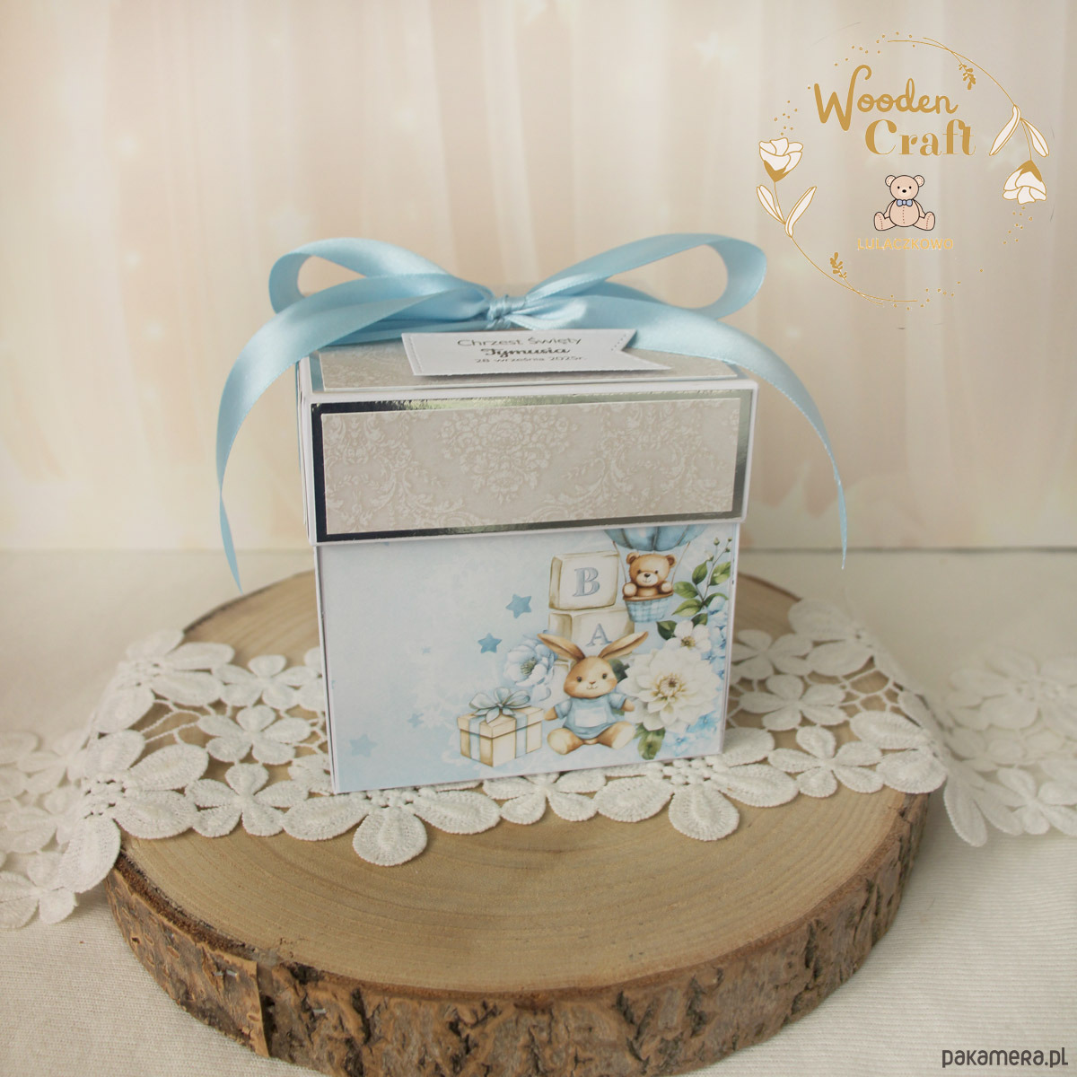Box będzie pięknym prezentem dla chłopczyka z okazji Chrztu Świętego, narodzin, roczku lub urodzin.