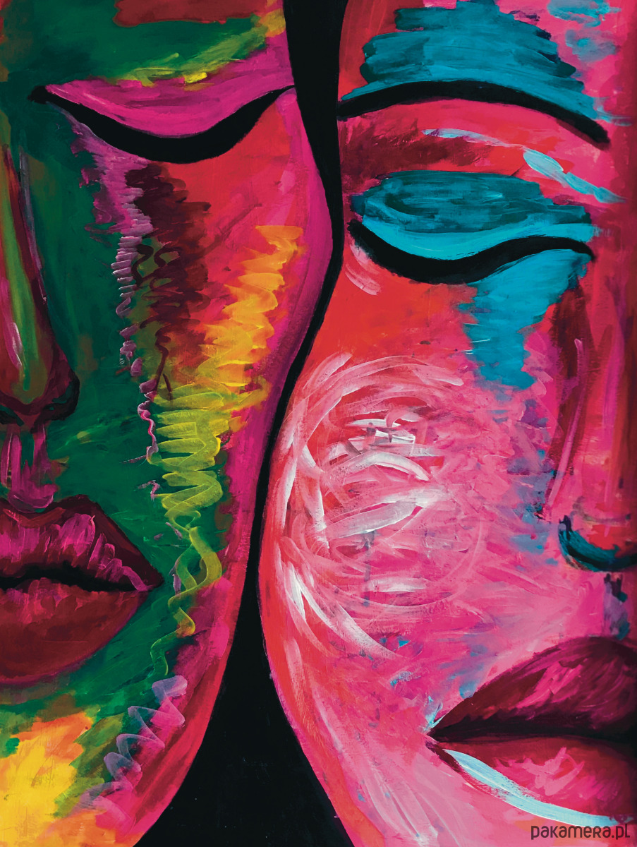 Reprodukcja obrazu Faces. Jeśli potrzebujesz przyciągającego uwagi obrazu tak ten plakat jest dla Ciebie, nie da się przejść koło tych dwóch twarzy obojętnie.