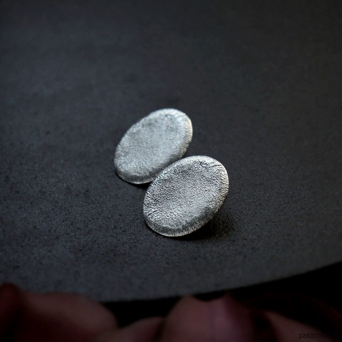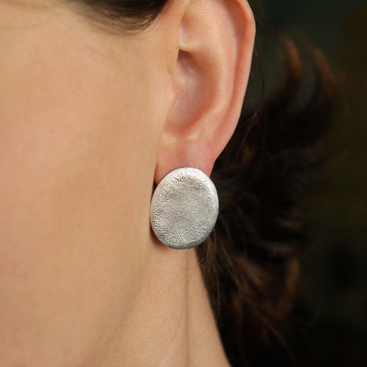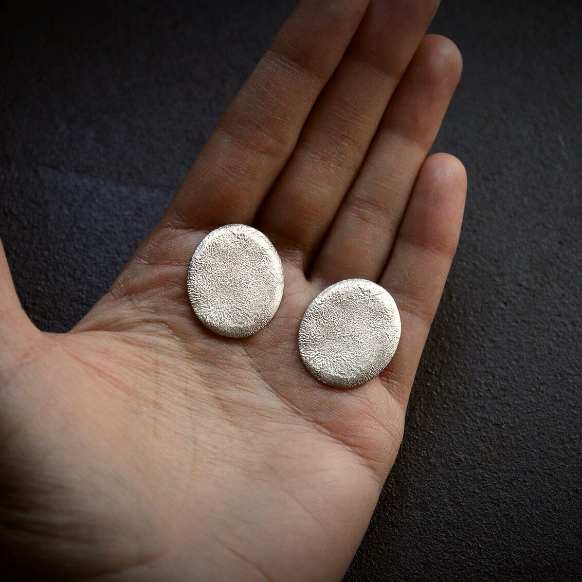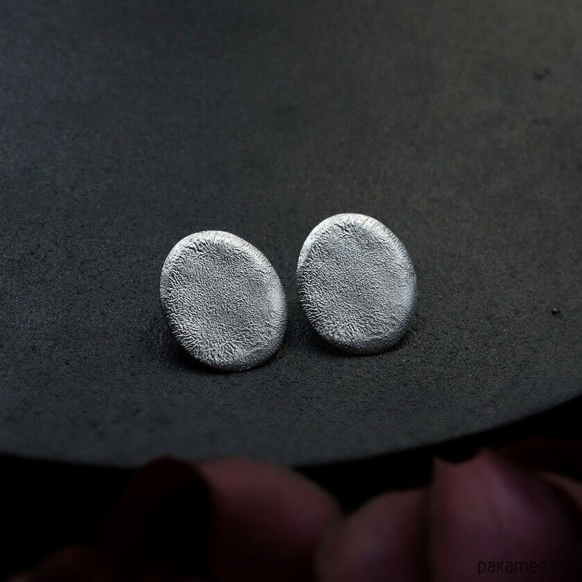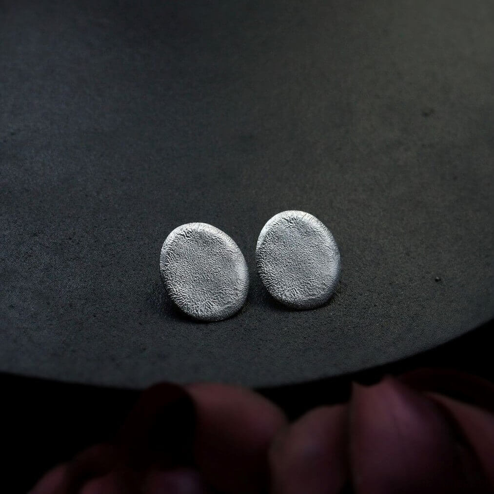 Duże kolczyki owalne z surową nadpalaną strukturą, to jeden z charakternych wyrobów z najnowszej kolekcji Raw. Duże kolczyki sztyfty leżące blisko ucha dobrze prezentują się jako klasyczna wieczorowa biżuteria. Charakteryzuje je szyk i elegancja, a za sprawą faktury rzeźbionej ogniem - również oryginalność. Biżuteria ręcznie robiona ze srebra 925.
