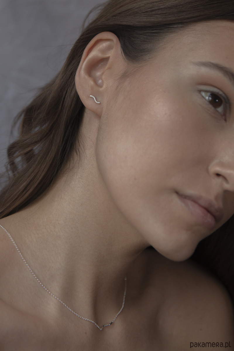 – ręcznie wykonane kolczyki FALA ze srebra o długości +/- 1 cm na sztyft z klasycznym, motylkowym zapięciem; zapięcie nie jest widoczne na zdjęciu