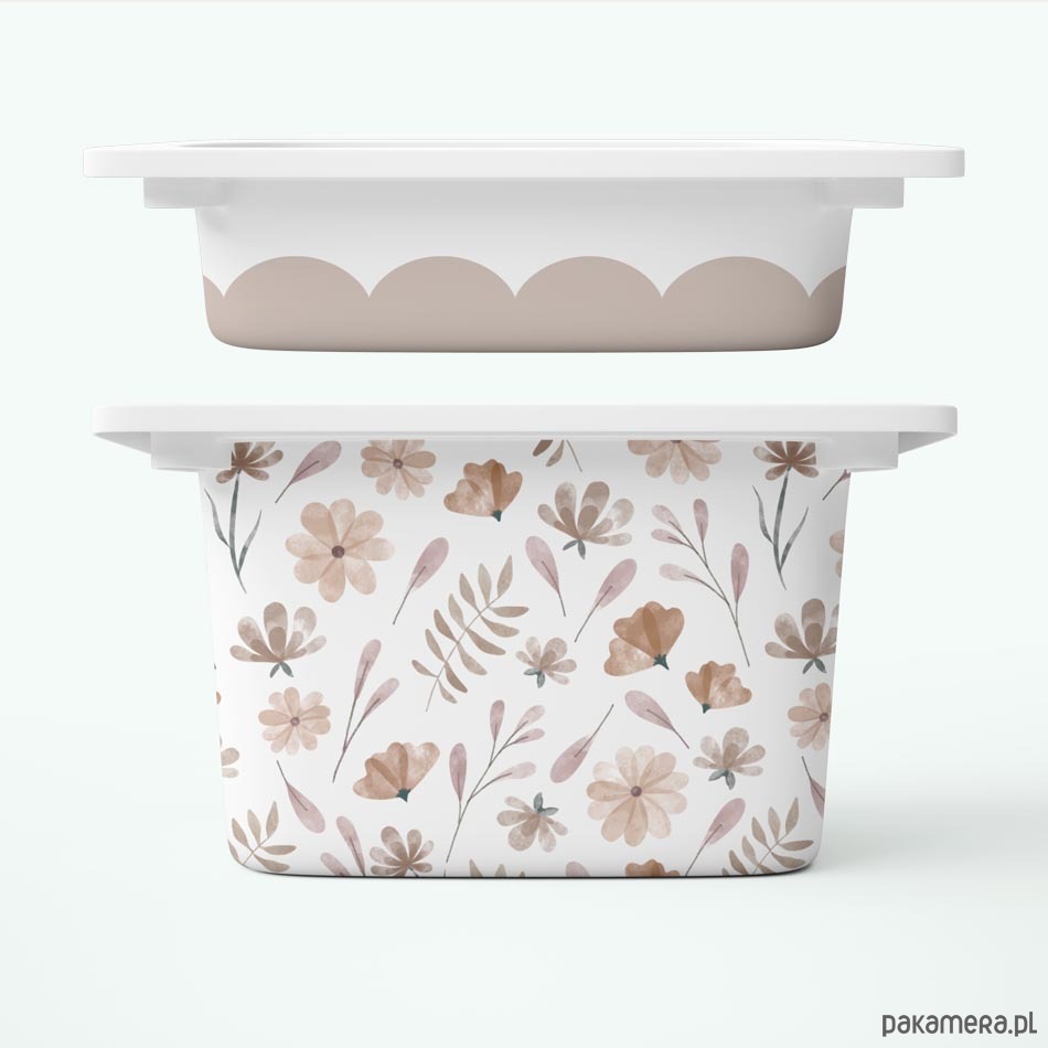 Falbanka i beżowe kwiaty - naklejki na pojemniki na zabawki
