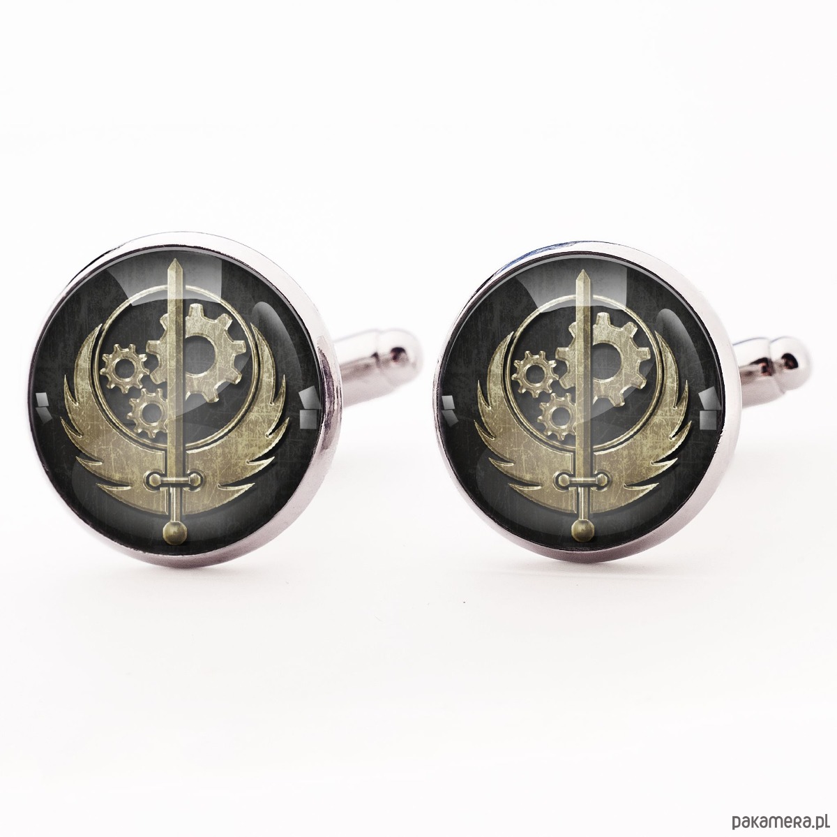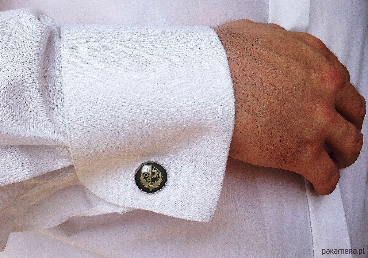 Ręcznie robione spinki do mankietów z wysokiej jakości grafiką offsetową pokrytą wypukłym, powiększającym szkiełkiem.