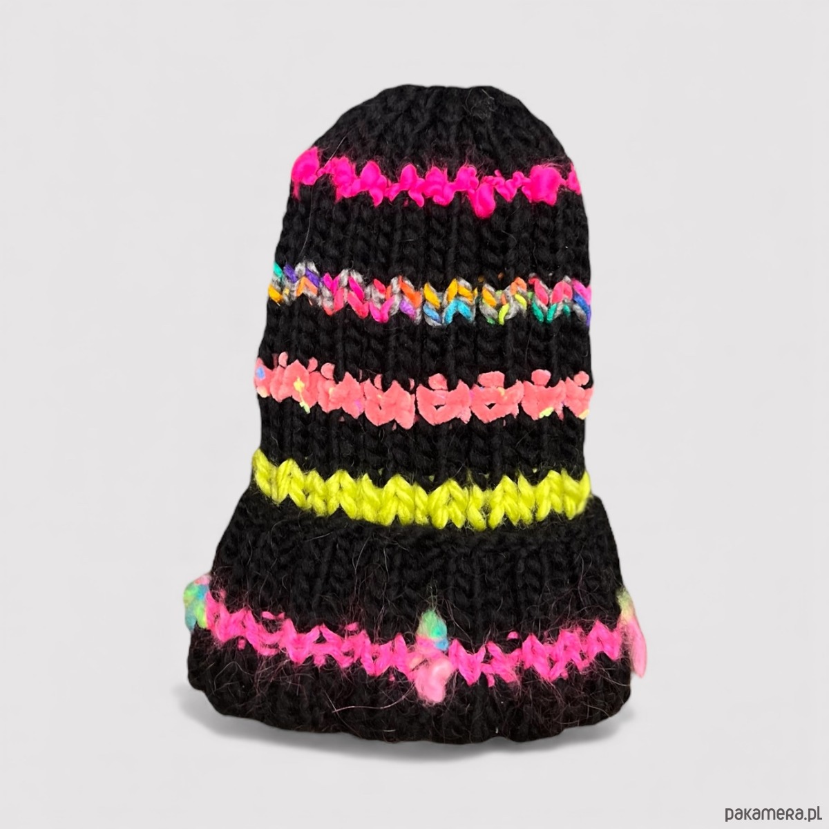 Czapka na bazie naturalnej włóczki 100% wełna z kolorowymi dodatkami o różnych składach (moher, wełna, akryl)