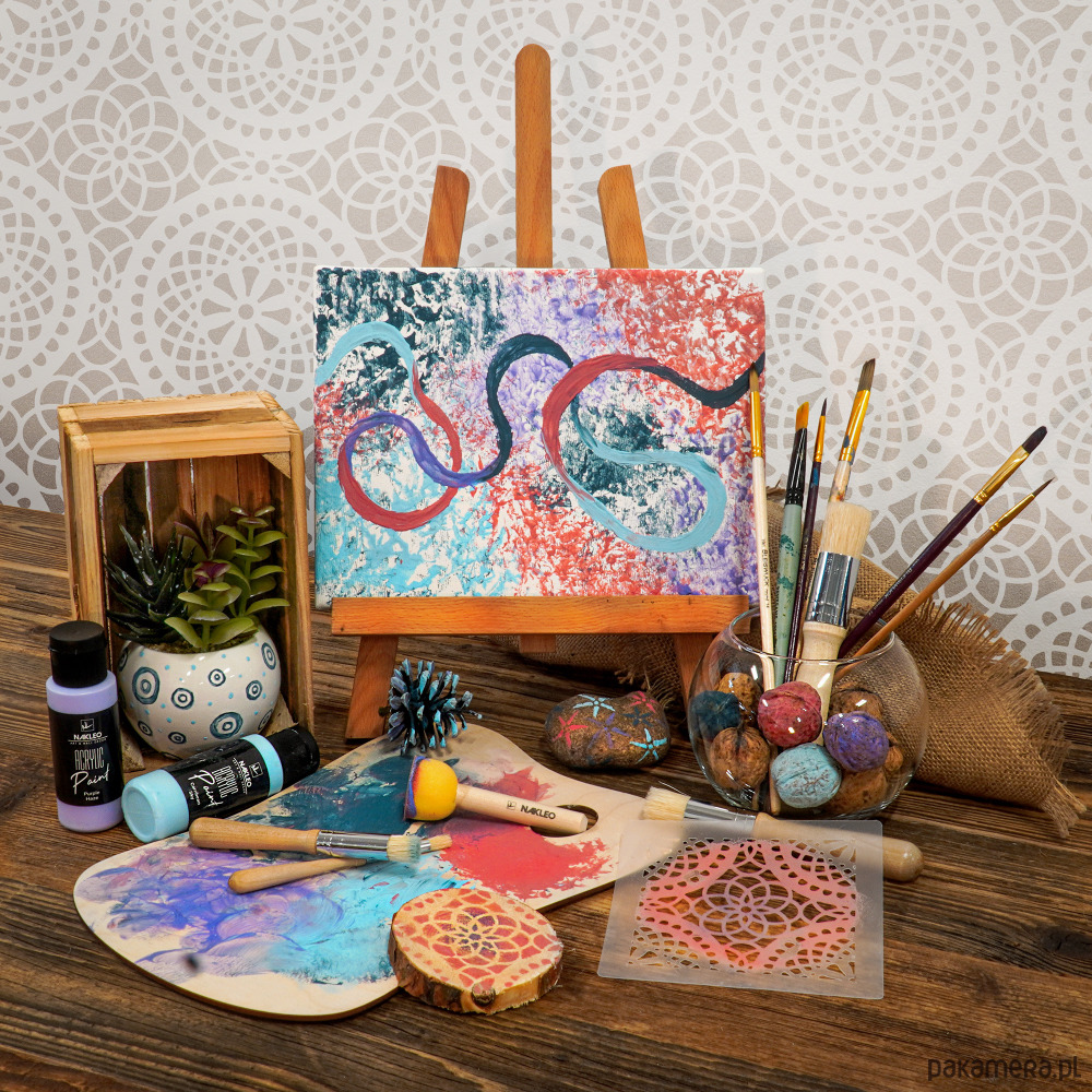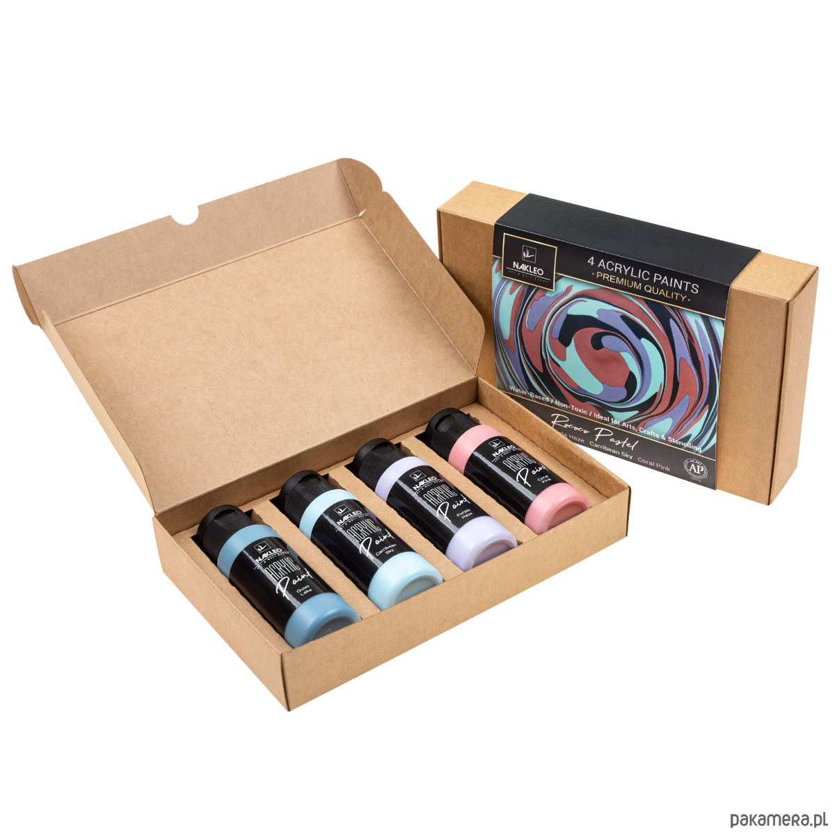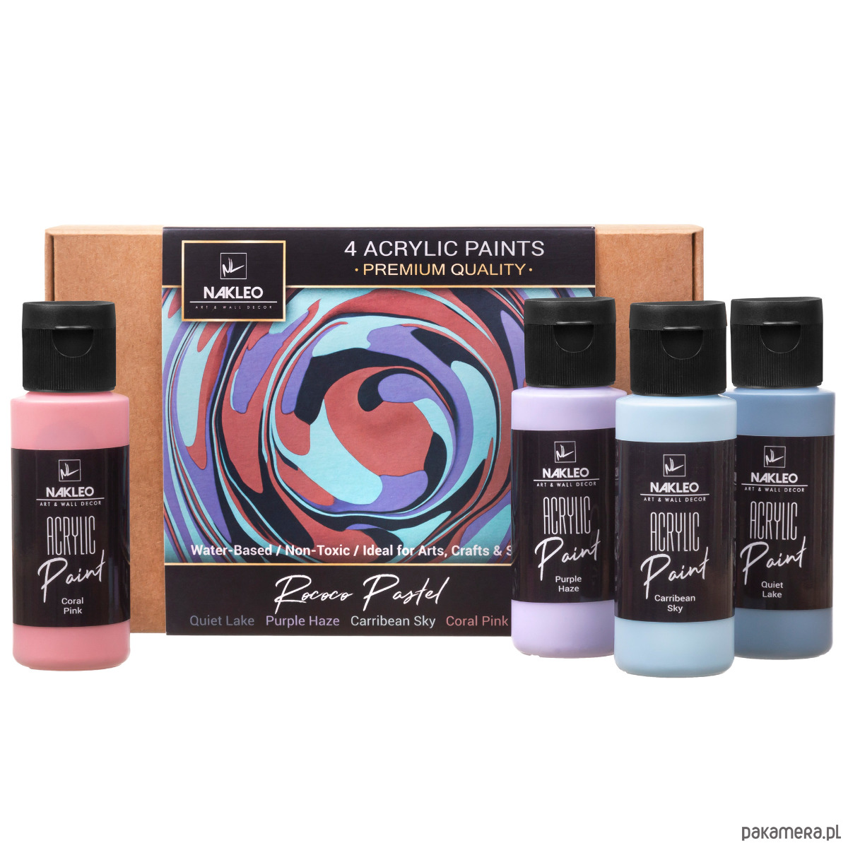 Do serii Nakleo Accessories dołączają farby akrylowe. Tropical Desire, Retro Chic, Deep Ocean, Vibrant Fun, Rococo Pastel, Metallic Classics to sześć zestawów po cztery kolory w każdym, które zostały starannie dopasowane do stworzenia unikalnych dekoracji. Każda tubka zawiera 60ml wysokiej jakości, trwałej farby wyprodukowanej na bazie wody, dzięki czemu skład jest ekologiczny i bezpieczny dla środowiska. Łatwość użycia i szeroki wachlarz barw sprawia, że każdy, nawet największy laik może poczuć się jak artysta.
