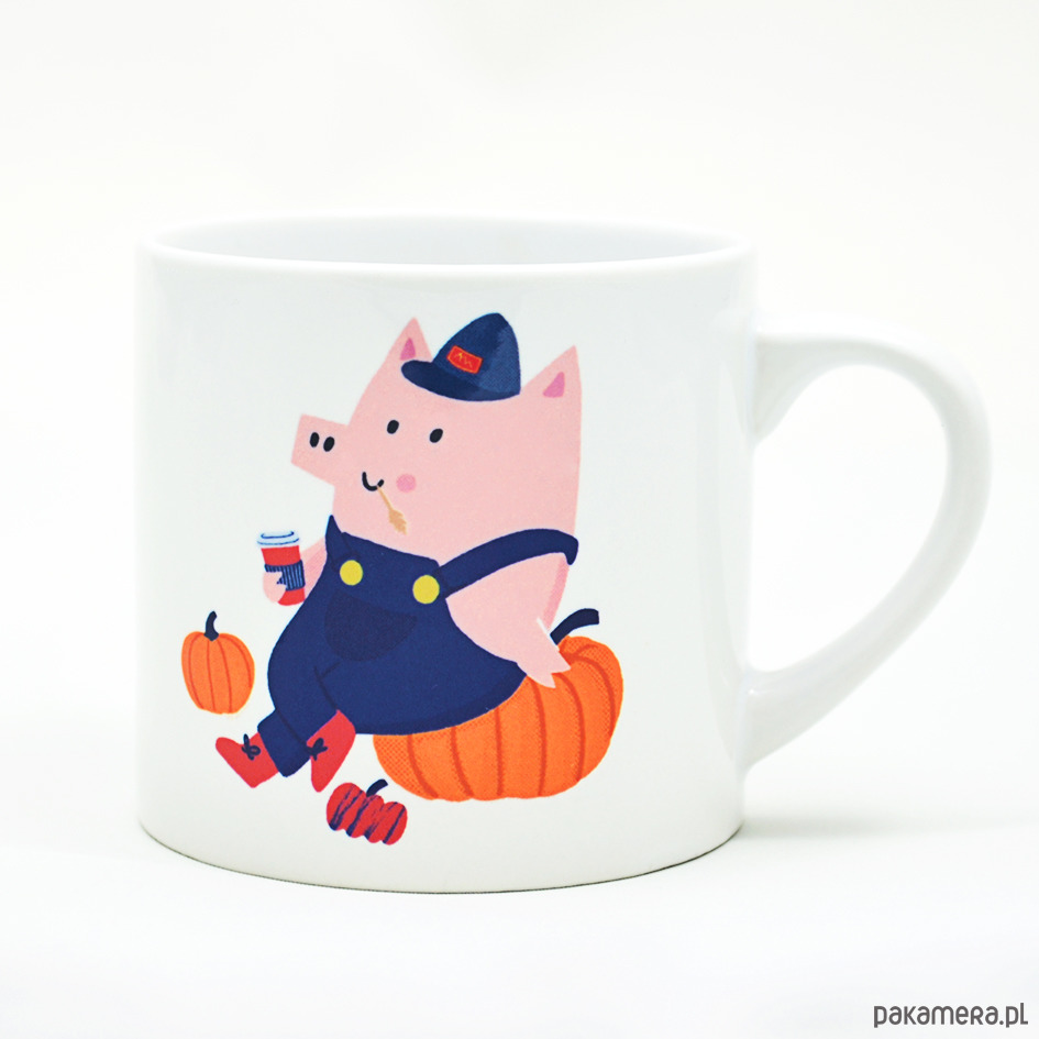 Świnka na farmie dyń, popija dyniową latte ze swojego termicznego kubka :)