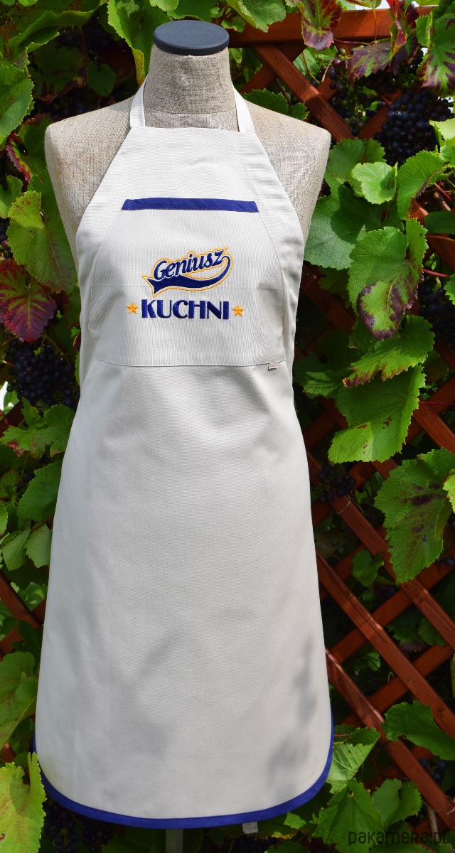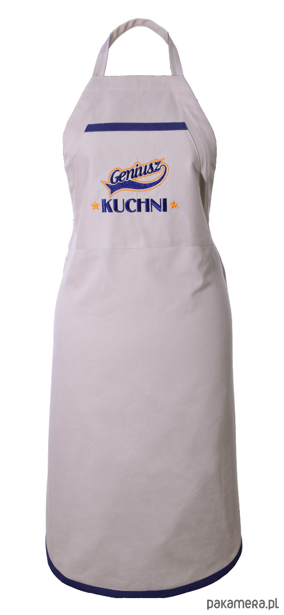 Fartuch Kuchenny bawełniany beżowy haftowany Geniusz kuchni EXTRA PREZENT::