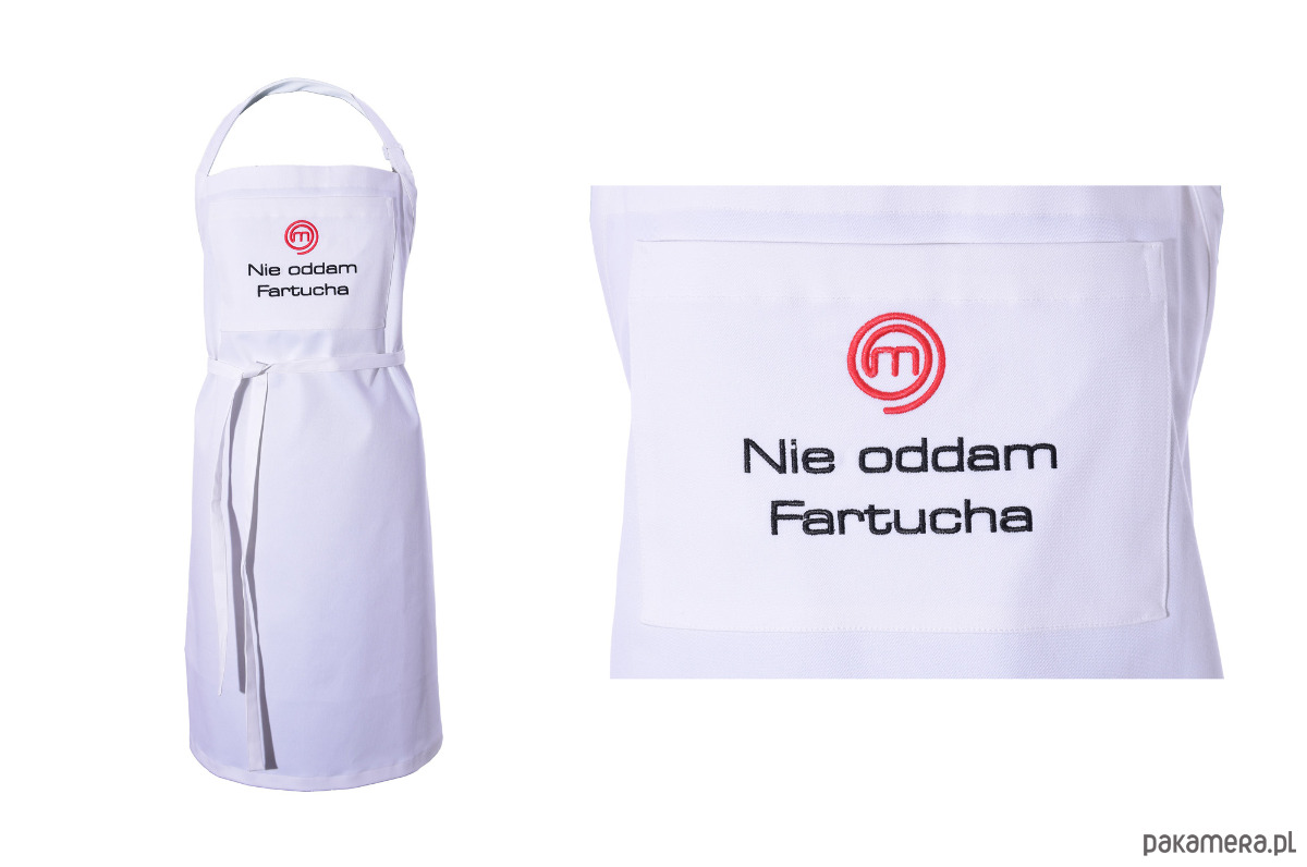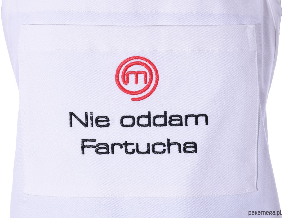 Fartuch Kuchenny bawełniany biały haftowany Nie oddam fartucha Masterchef::