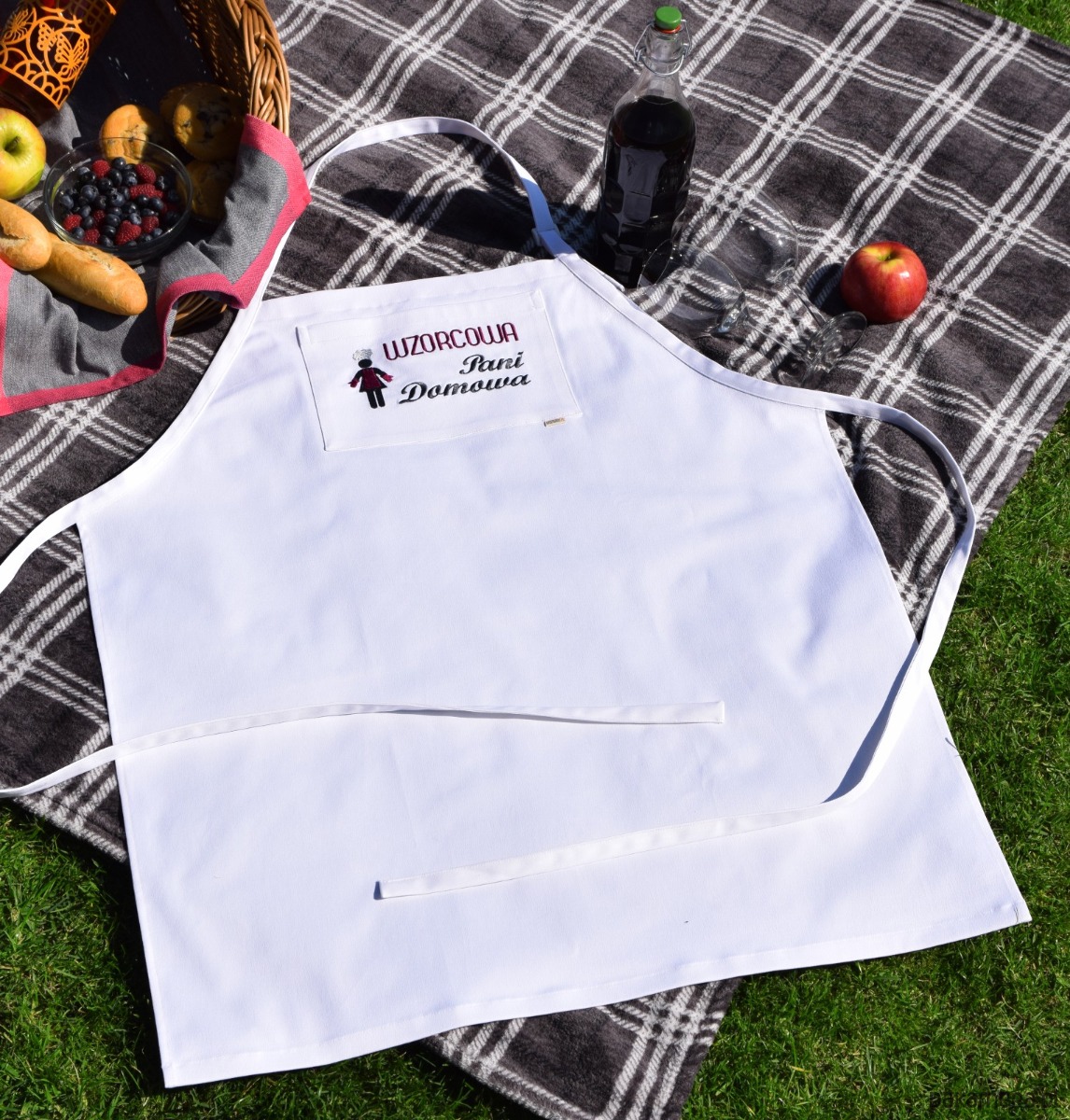 Fartuch Kuchenny bawełniany biały haftowany Wzorcowa Pani Domowa PREZENT