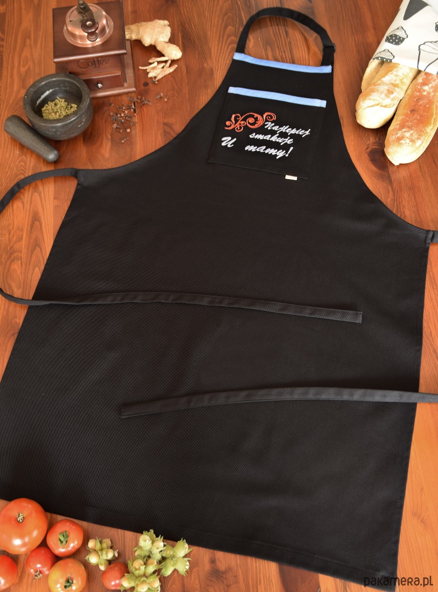 Fartuch Kuchenny CZARNY bawełniany haftowany NAJLEPIEJ SMAKUJE U MAMY