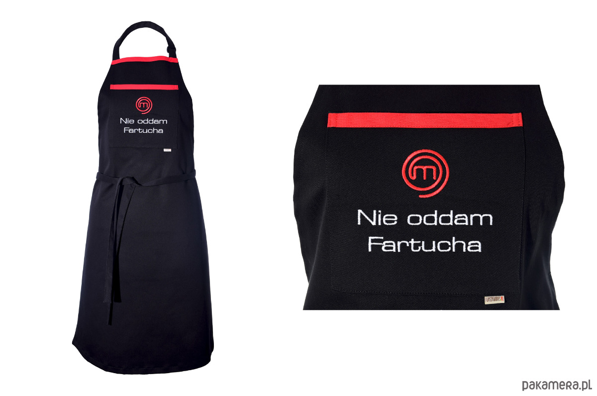 HAFTOWANY FARTUCH KUCHENNY - NIE ODDAM FARTUCHAFartuch Kuchenny „Nie oddam fartucha” – Dla Mistrzów KuchniPoczuj się jak uczestnik najlepszego kulinarnego show! Nasz fartuch kuchenny bawełniany to propozycja dla tych, którzy gotują z pasją i nie uznają kompromisów. Wykonany z wysokiej jakości tkaniny o gramaturze 300g/m2, stanowi solidną barierę przed zabrudzeniami. Skład materiału (98% bawełna) zapewnia komfort i przewiewność, a dodatek poliestru gwarantuje trwałość formy nawet po wielu praniach.Na środku znajduje się praktyczna kieszeń z profesjonalnym haftem komputerowym. Kultowe hasło „Nie oddam fartucha” wraz z efektownym symbolem w kolorze czerwonym jasno komunikuje Twoje kompetencje w kuchni. Czerwona lamówka przy kieszeni dodaje całości sportowej elegancji i profesjonalnego charakteru.Dlaczego warto go mieć?Polska jakość: Produkt marki Wyszywane, stworzony z dbałością o detale i trwałość haftu.