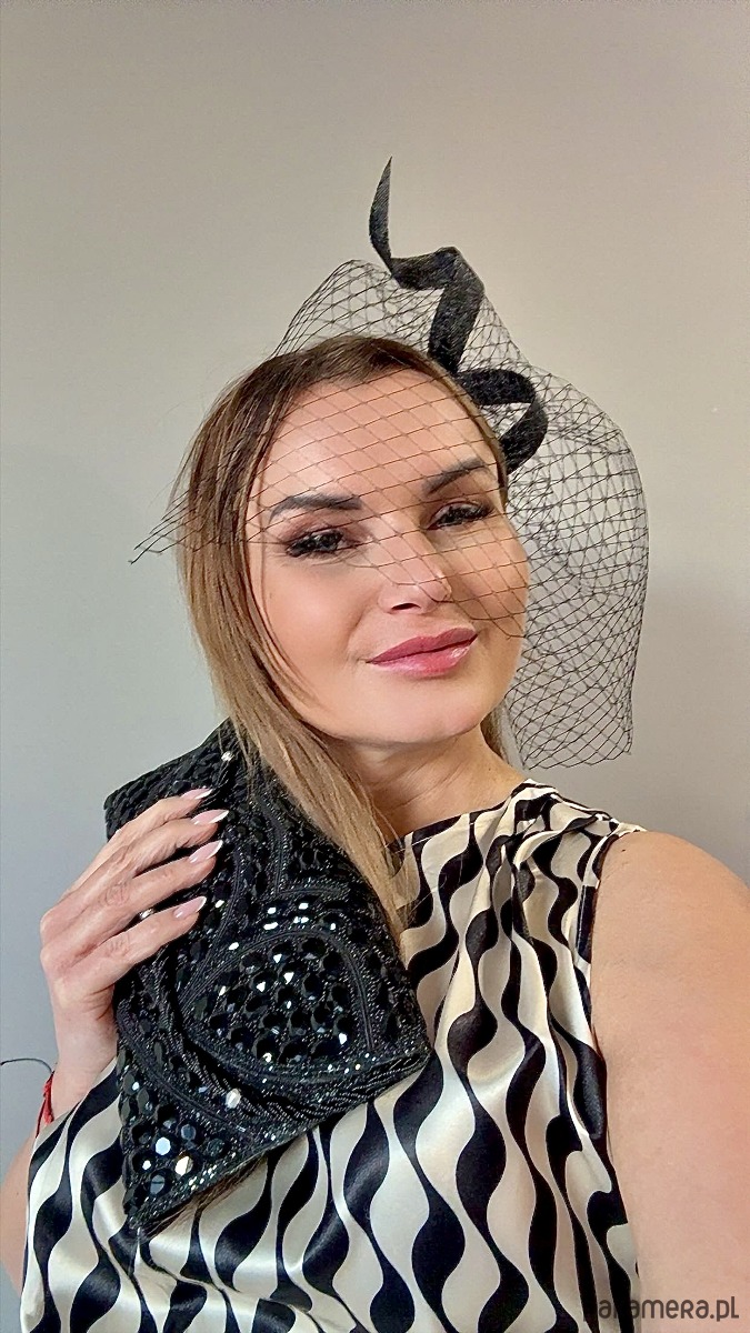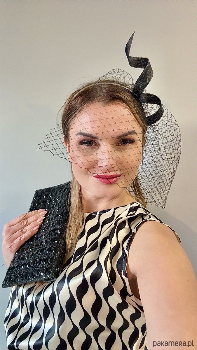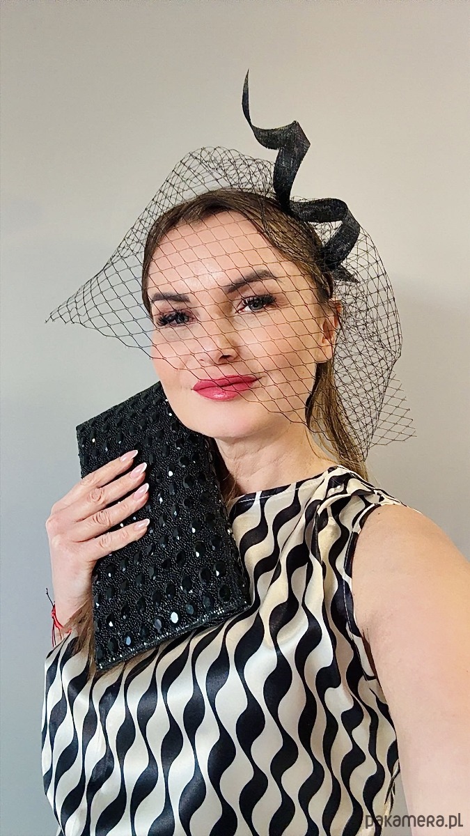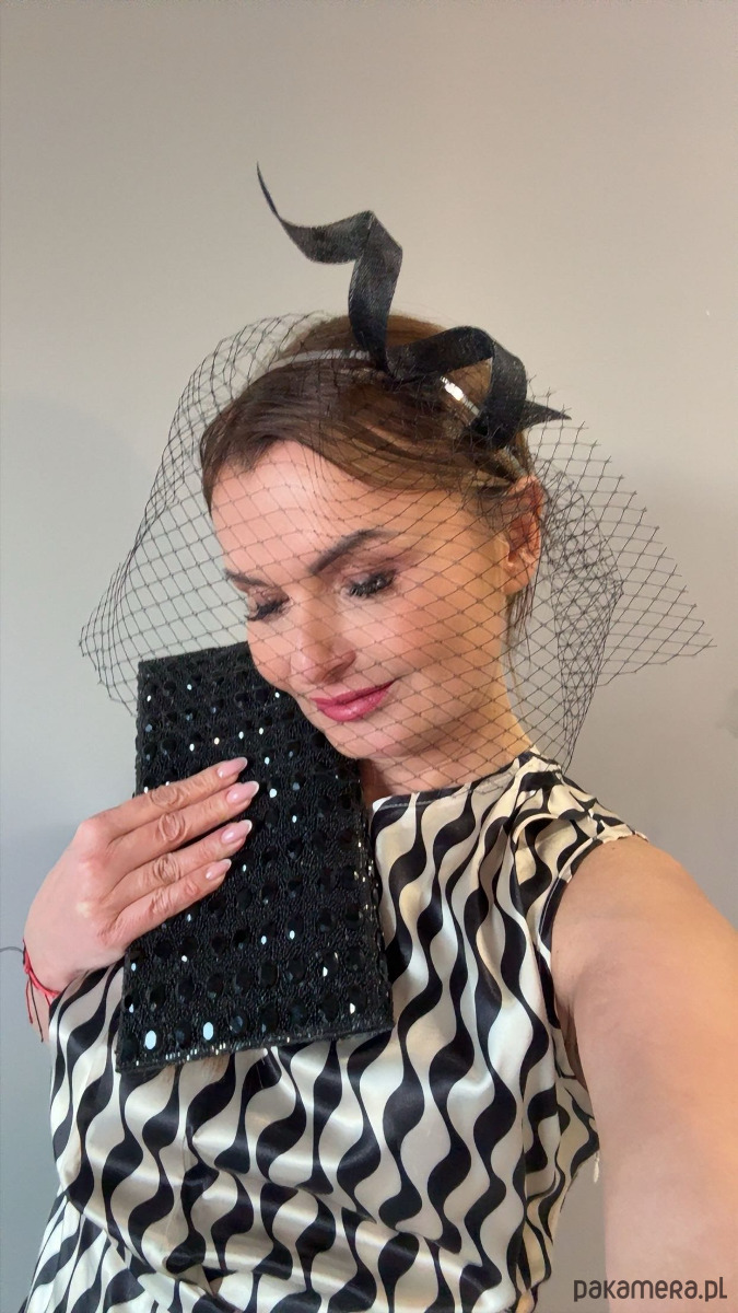 Fascynator /ozdoba na głowę w czarnym kolorze .Piękny i elegancki dodatek do kreacji , doskonały na różne okazje. Wykonany profesjonalnie , ze szczególną starannością i dbałością o każdy szczegó , zamocowany na złotej ,czarnej lub srebrnej opasce - do wyboru .Fascynator można nosić na różne sposoby , a to dzięki mocowaniu do opaski , które jest wykonane w sposób , który umożliwia przesuwanie ozdoby do różnych pozycji na głowie , w zależności od potrzeby czy upodobania.