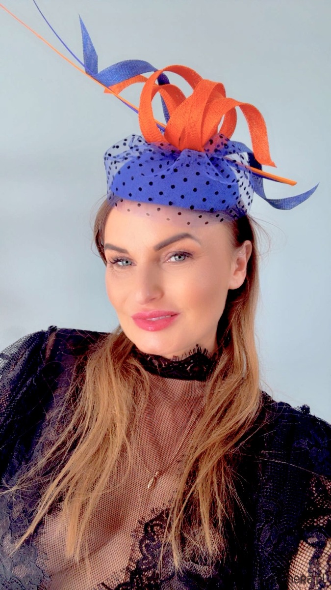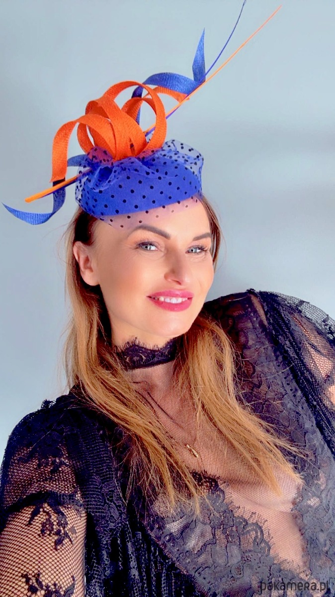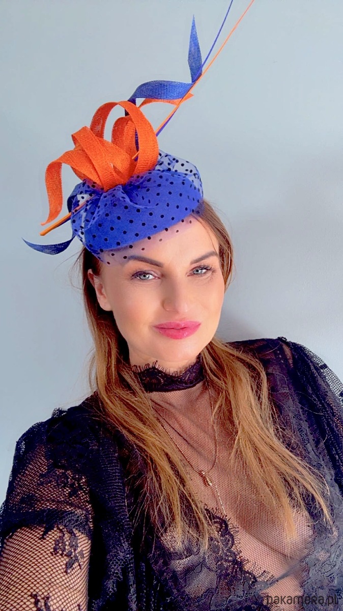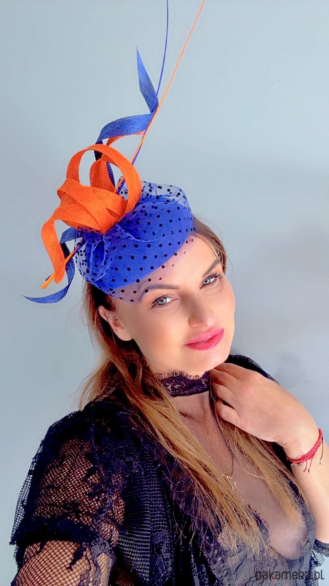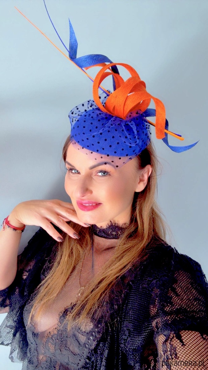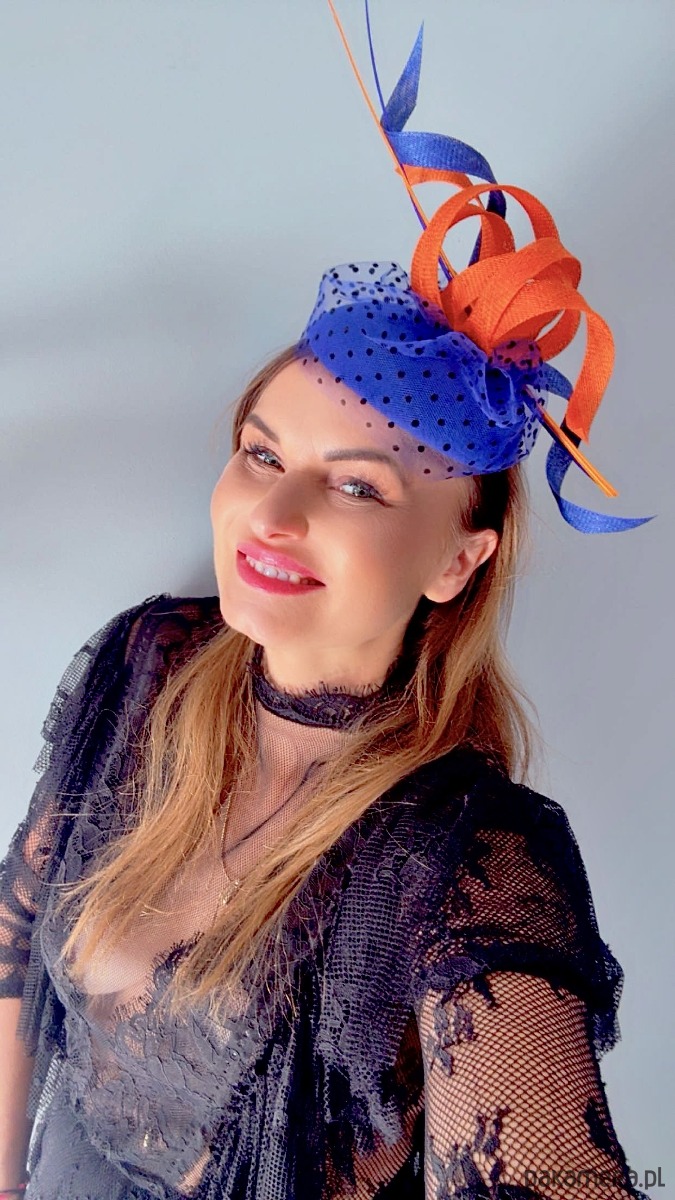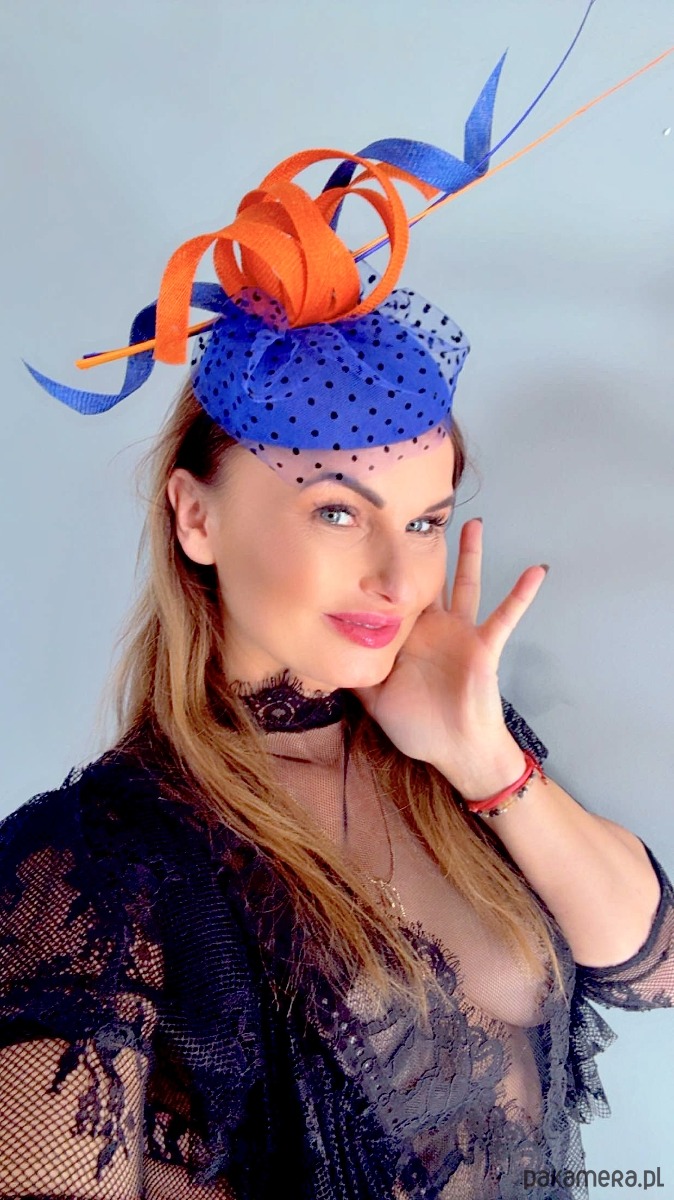 Wykonany profesjonalnie , ze szczególną starannością i dbałością o każdy szczegół , z brytyjskiej taśmy sinamay oraz zamocowany na złotej lub srebrnej opasce - do wyboru .Fascynator można nosić na różne sposoby , a to dzięki mocowaniu do opaski , które jest wykonane w sposób , który umożliwia przesuwanie ozdoby do różnych pozycji na głowie , w zależności od potrzeby czy upodobania.