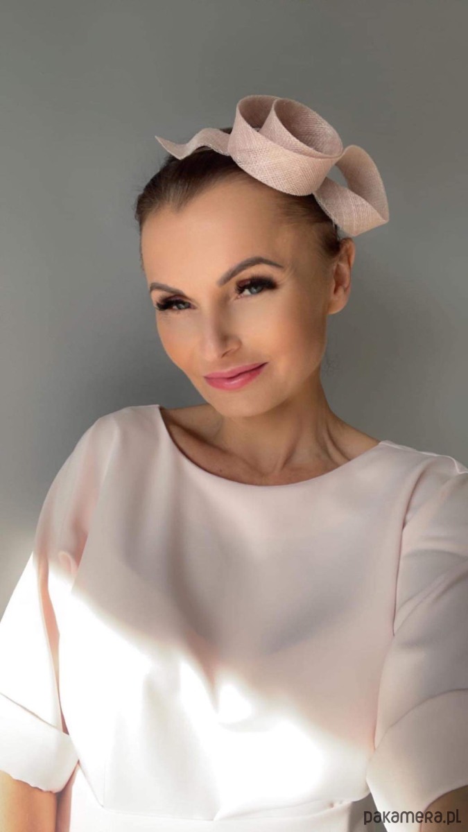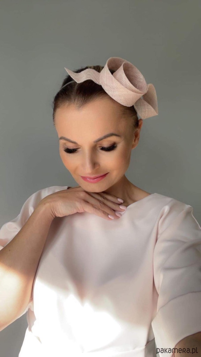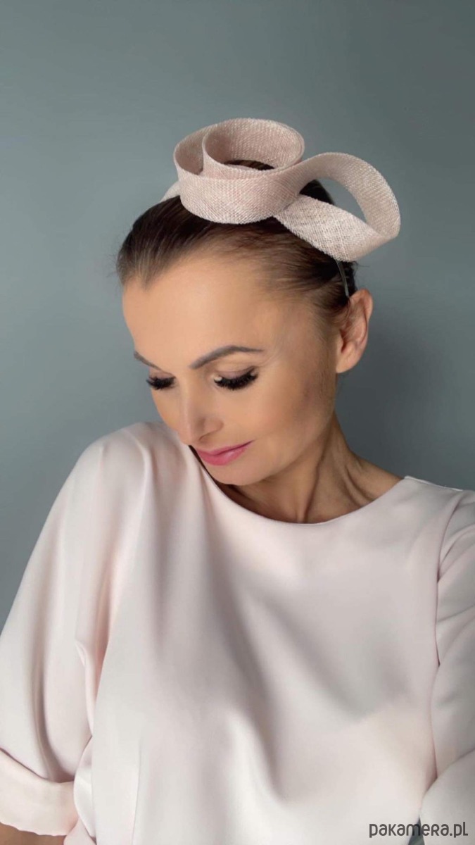 Fascynator /ozdoba na głowę w kolorze pudrowy róż .Piękny i elegancki dodatek do kreacji , doskonały na różne okazje. Wykonany profesjonalnie , ze szczególną starannością i dbałością o każdy szczegół , z brytyjskiej taśmy sinamay , zamocowany na złotej ,czarnej lub srebrnej opasce - do wyboru .Fascynator można nosić na różne sposoby , a to dzięki mocowaniu do opaski , które jest wykonane w sposób , który umożliwia przesuwanie ozdoby do różnych pozycji na głowie , w zależności od potrzeby czy upodobania.