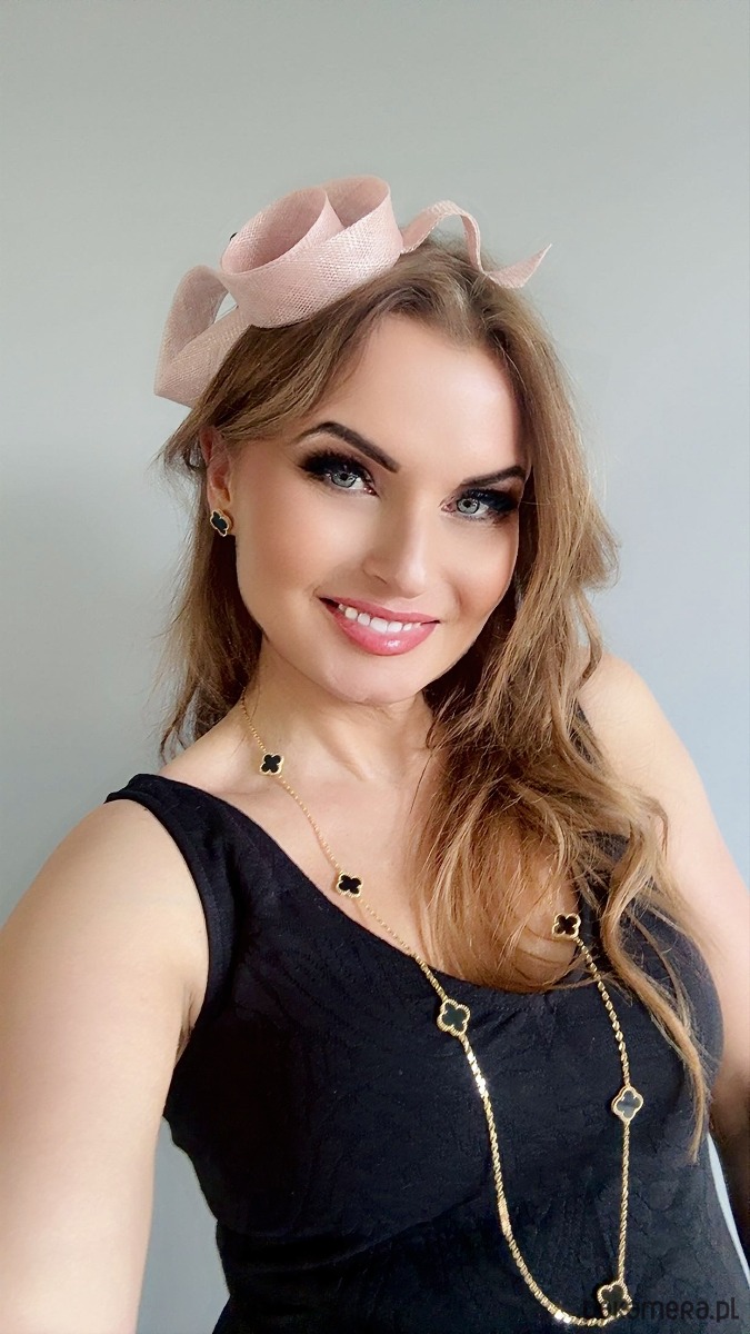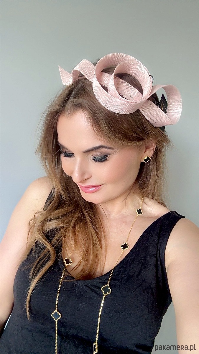 Fascynator /ozdoba na głowę w kolorze pudrowy róż .Piękny i elegancki dodatek do kreacji , doskonały na różne okazje. Wykonany profesjonalnie , ze szczególną starannością i dbałością o każdy szczegół , z brytyjskiej taśmy sinamay , zamocowany na złotej ,czarnej lub srebrnej opasce - do wyboru .Fascynator można nosić na różne sposoby , a to dzięki mocowaniu do opaski , które jest wykonane w sposób , który umożliwia przesuwanie ozdoby do różnych pozycji na głowie , w zależności od potrzeby czy upodobania.