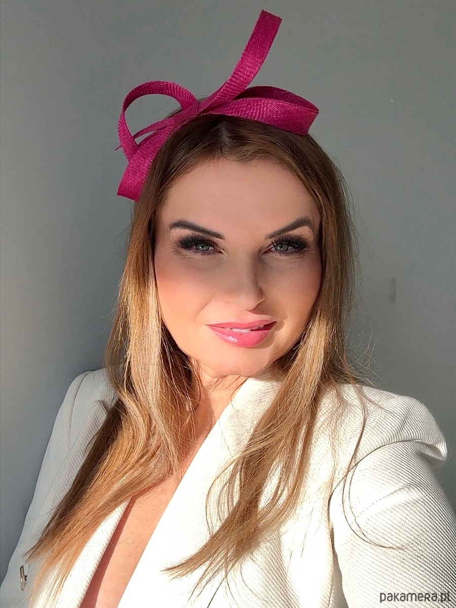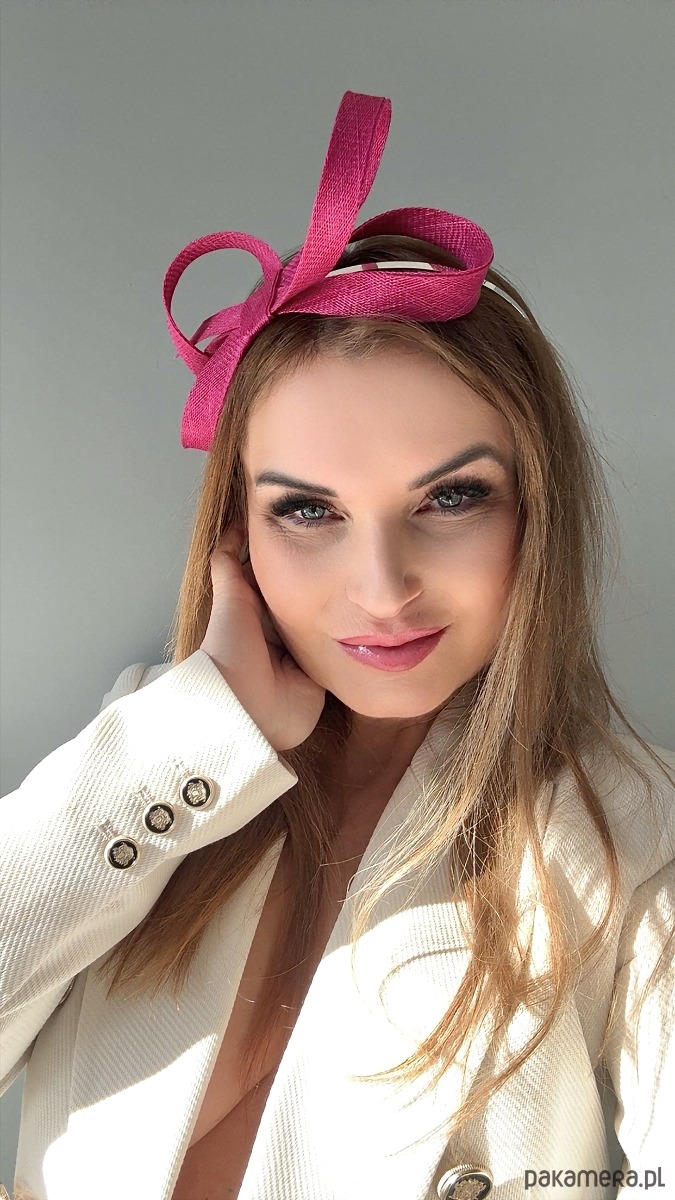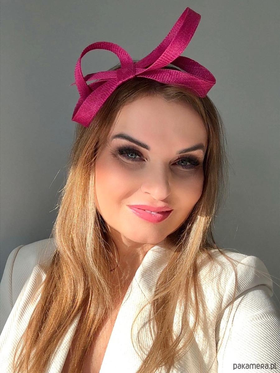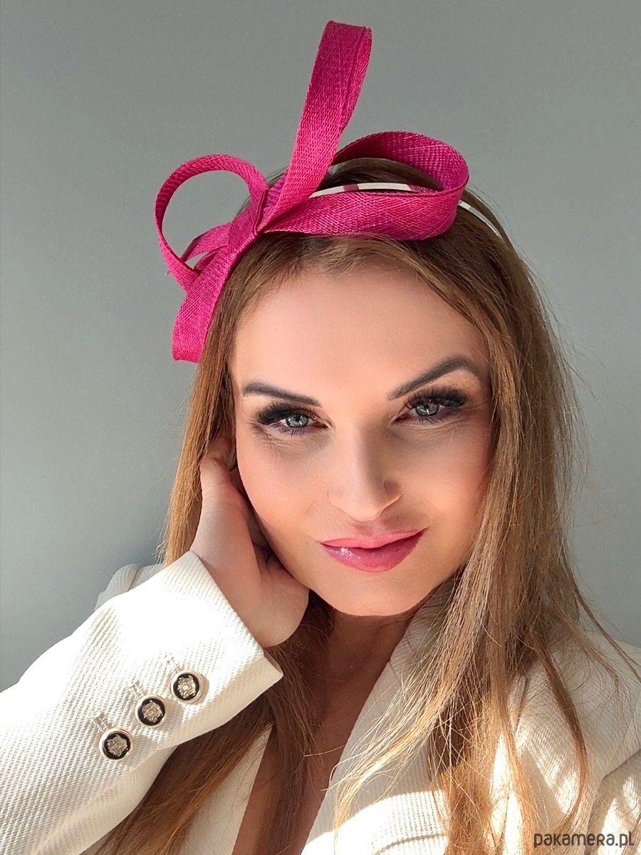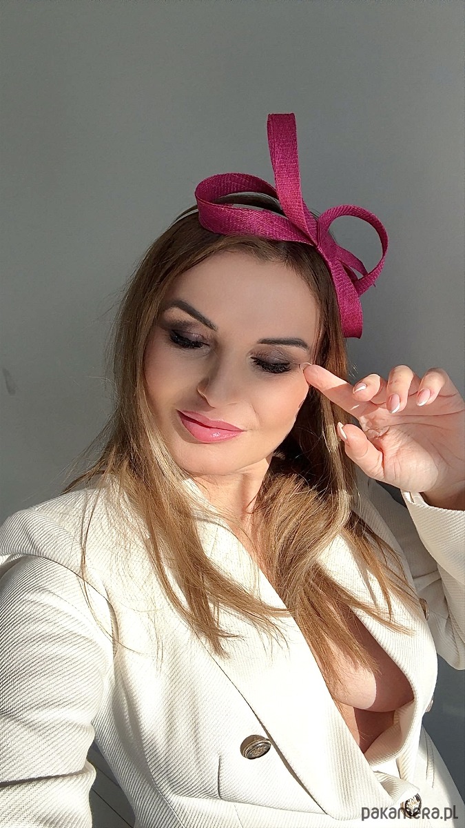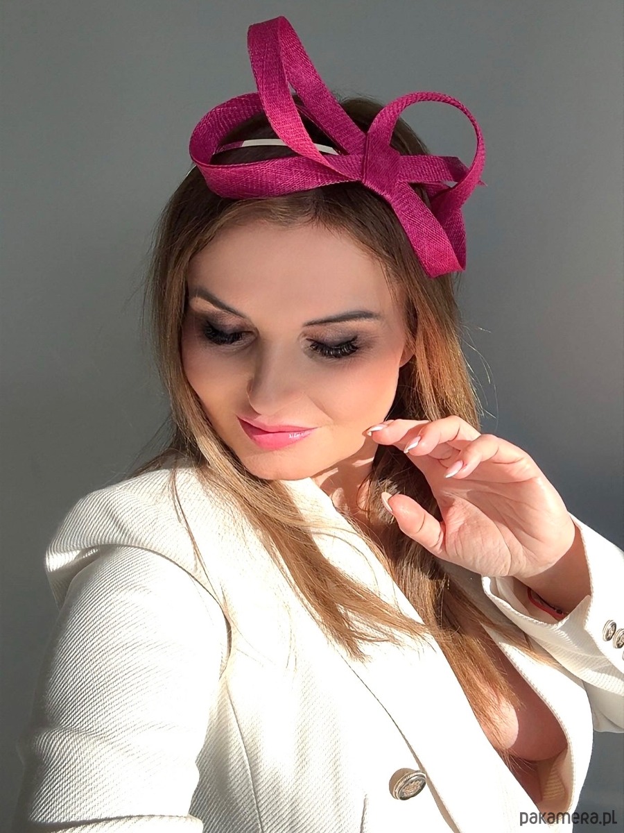 Fascynator /ozdoba na głowę w amarantowym kolorze .Piękny i elegancki dodatek do kreacji , doskonały na różne okazje. Wykonany profesjonalnie , ze szczególną starannością i dbałością o każdy szczegół , z brytyjskiej taśmy sinamay oraz zamocowany na złotej ,czarnej lub srebrnej opasce - do wyboru .Fascynator można nosić na różne sposoby , a to dzięki mocowaniu do opaski , które jest wykonane w sposób , który umożliwia przesuwanie ozdoby do różnych pozycji na głowie , w zależności od potrzeby czy upodobania.