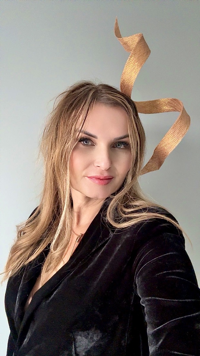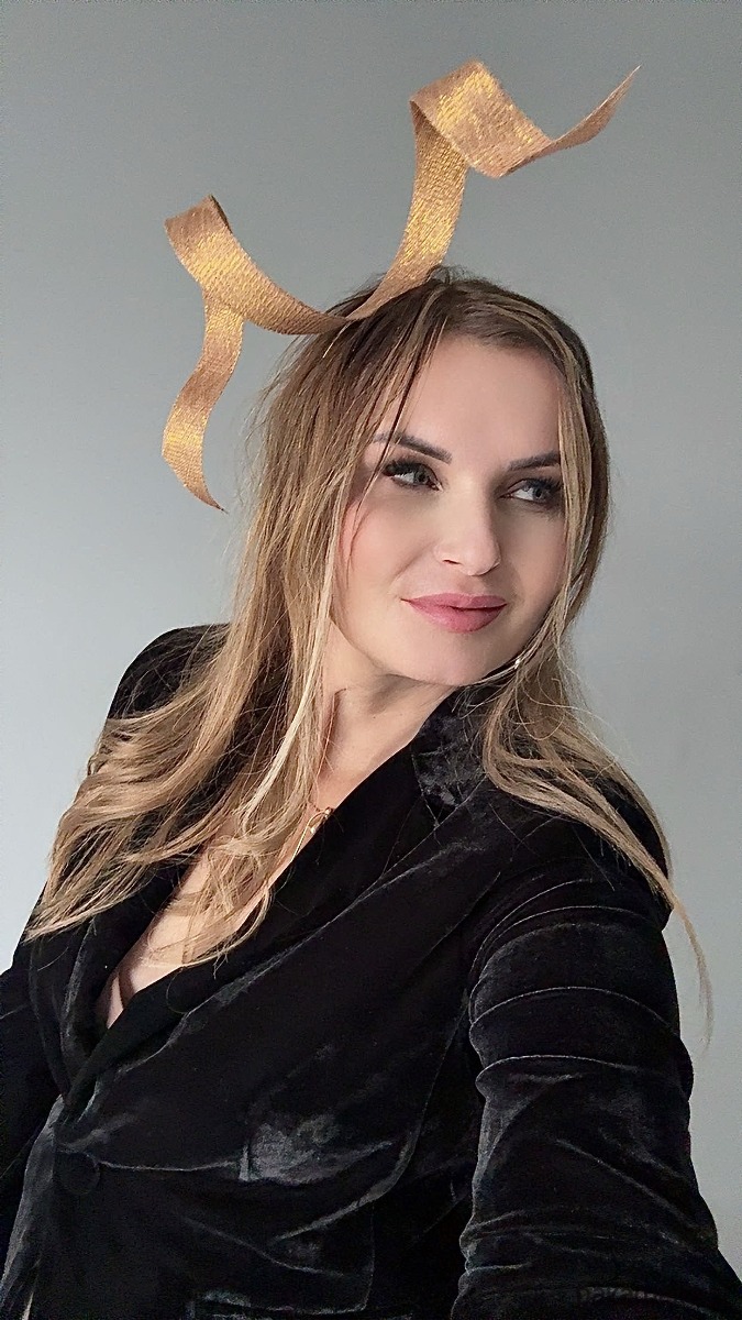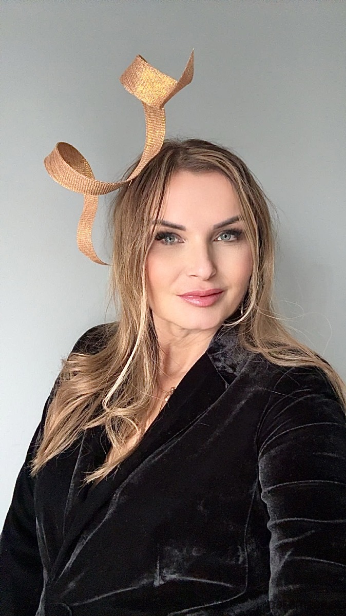Fascynator /ozdoba na głowę w kolorze złota , nietuzinkowy dodatek do kreacji , doskonały na różne okazje. Wykonany profesjonalnie , ze szczególną starannością i dbałością o każdy szczegół , z brytyjskiej taśmy sinamay oraz zamocowany na grzebyku lub złotej ,czarnej , srebrnej opasce - do wyboru .Fascynator można nosić na różne sposoby , a to dzięki mocowaniu do opaski , które jest wykonane w sposób , który umożliwia przesuwanie ozdoby do różnych pozycji na głowie , w zależności od potrzeby czy upodobania.