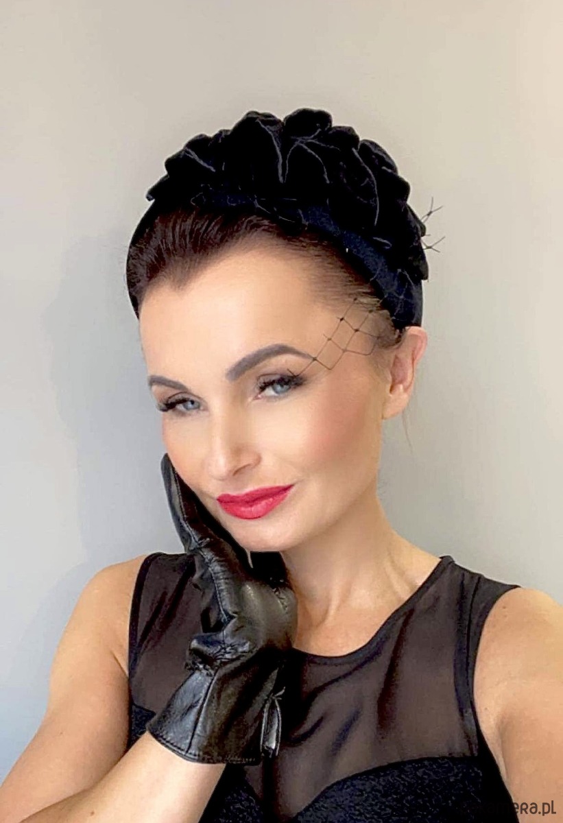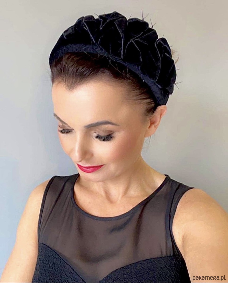 Gruba opaska / fascynator /ozdoba na głowę wykonana z aksamitu w czarnym kolorze .Piękny i elegancki dodatek do kreacji , doskonały na różne okazje. Wykonany profesjonalnie , ze szczególną starannością i dbałością o każdy szczegół . Na życzenie może być wykonany z delikatnym dodatkiem woalki lub bez niej .