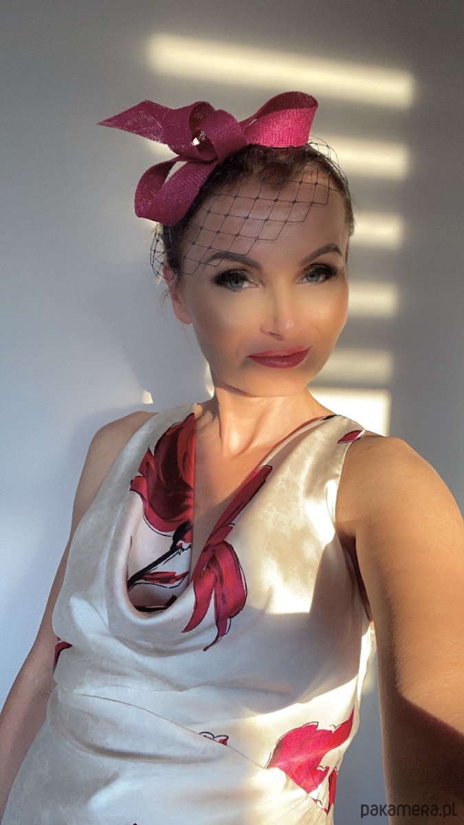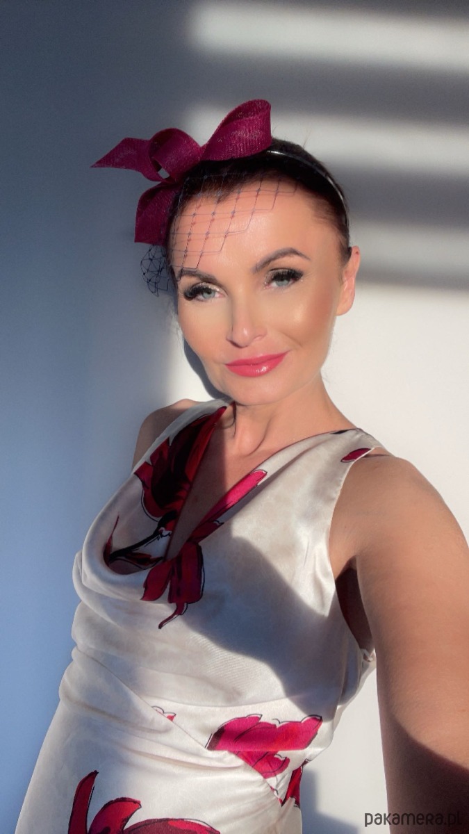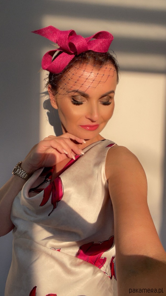 Wykonany profesjonalnie , ze szczególną starannością i dbałością o każdy szczegół , z brytyjskiej taśmy sinamay oraz zamocowany na złotej lub srebrnej opasce - do wyboru .Fascynator można nosić na różne sposoby , a to dzięki mocowaniu do opaski , które jest wykonane w sposób , który umożliwia przesuwanie ozdoby do różnych pozycji na głowie , w zależności od potrzeby czy upodobania.