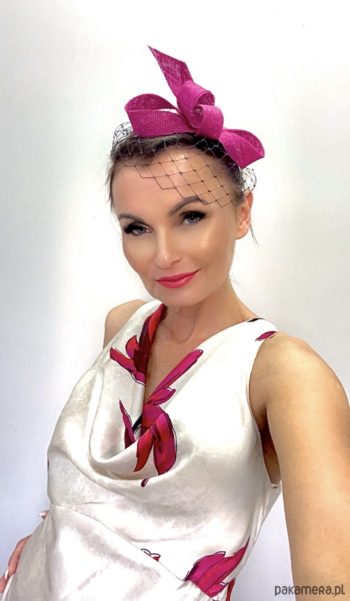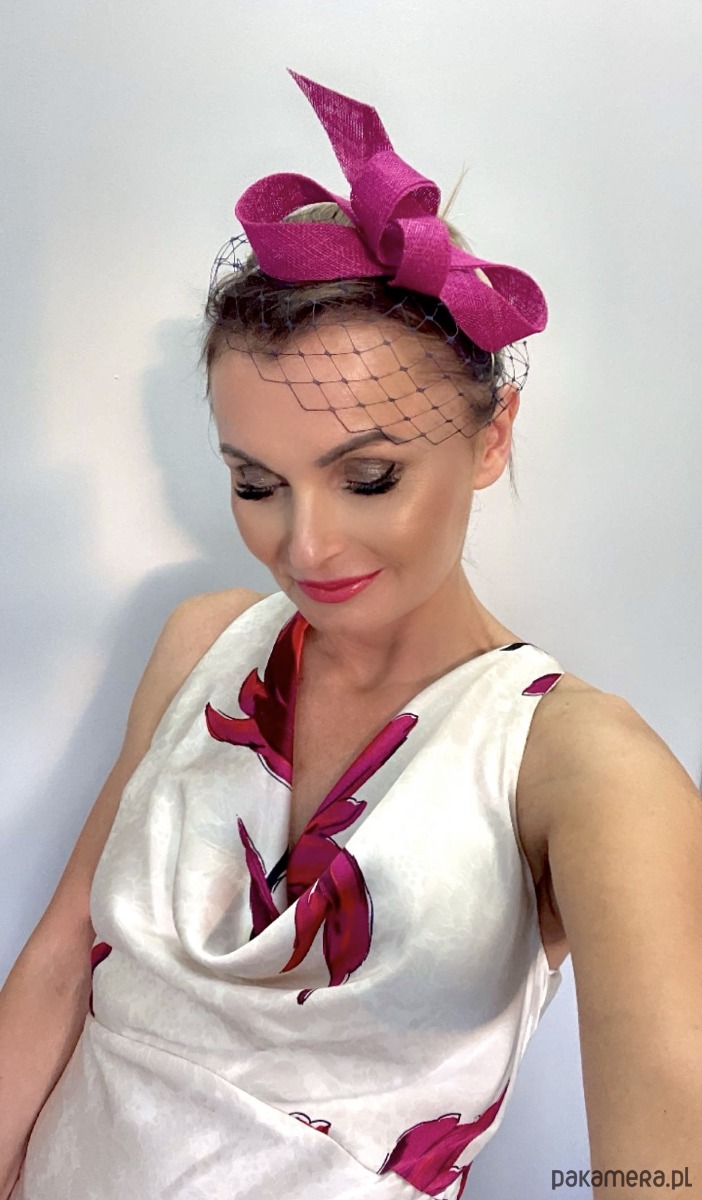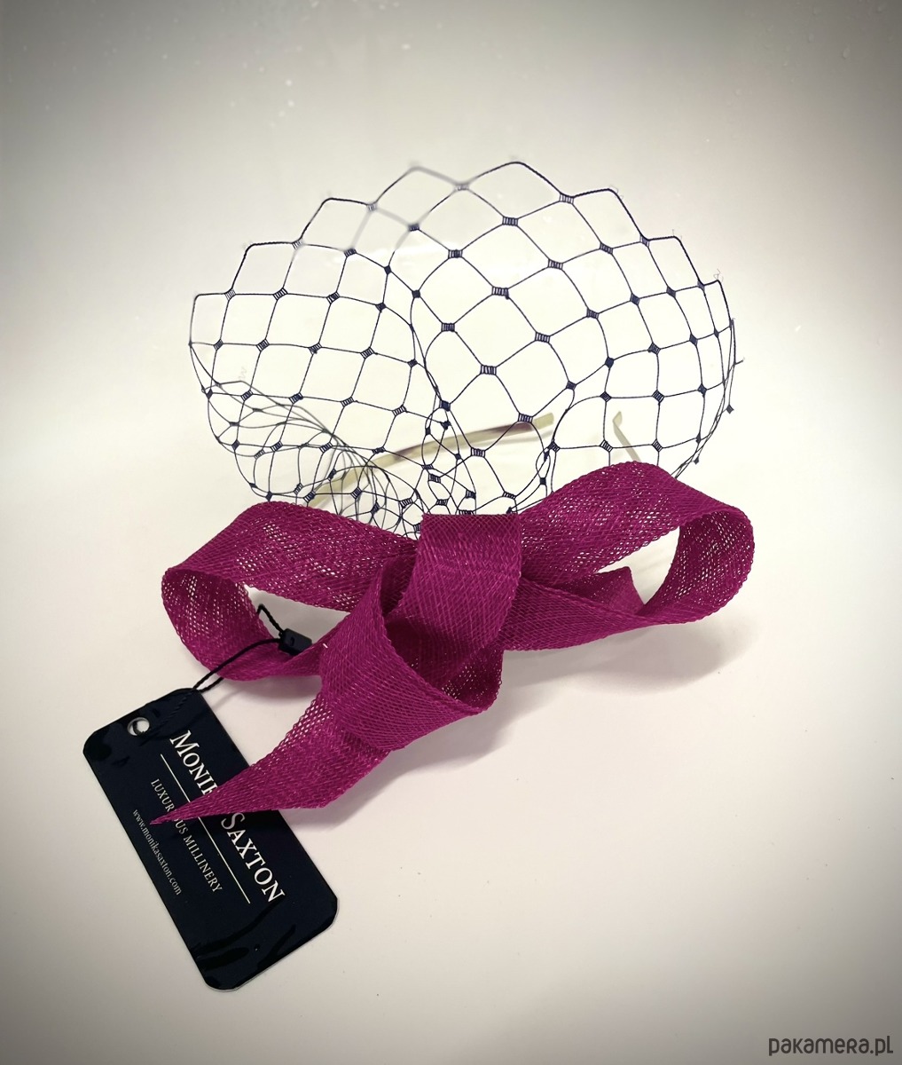Fascynator /ozdoba na głowę W KOLORZE FUKSJA /AMARANT Z GRANATOWĄ LUB CZARNĄ WOALKĄ piękny dodatek do kreacji , doskonały na różne okazje , a może pomysł na nietuzinkowy prezent .